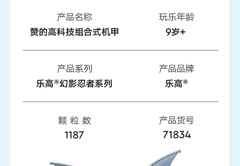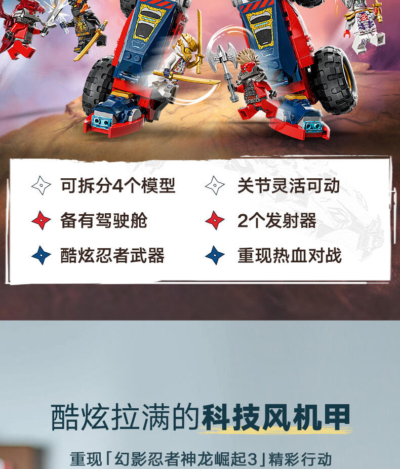 LEGO乐高 幻影忍者系列 71834 赞的高科技组合式机甲