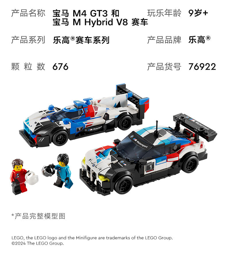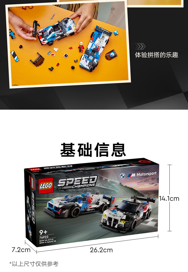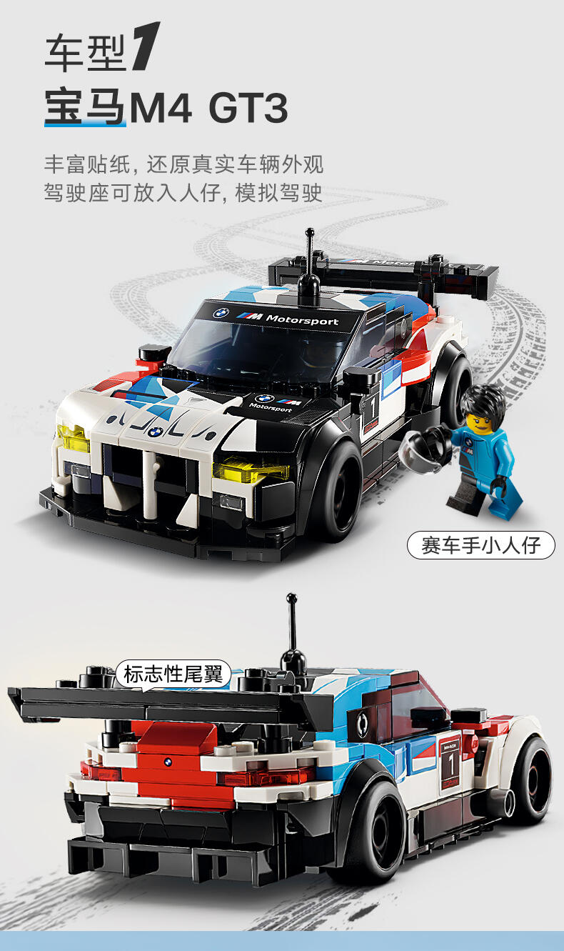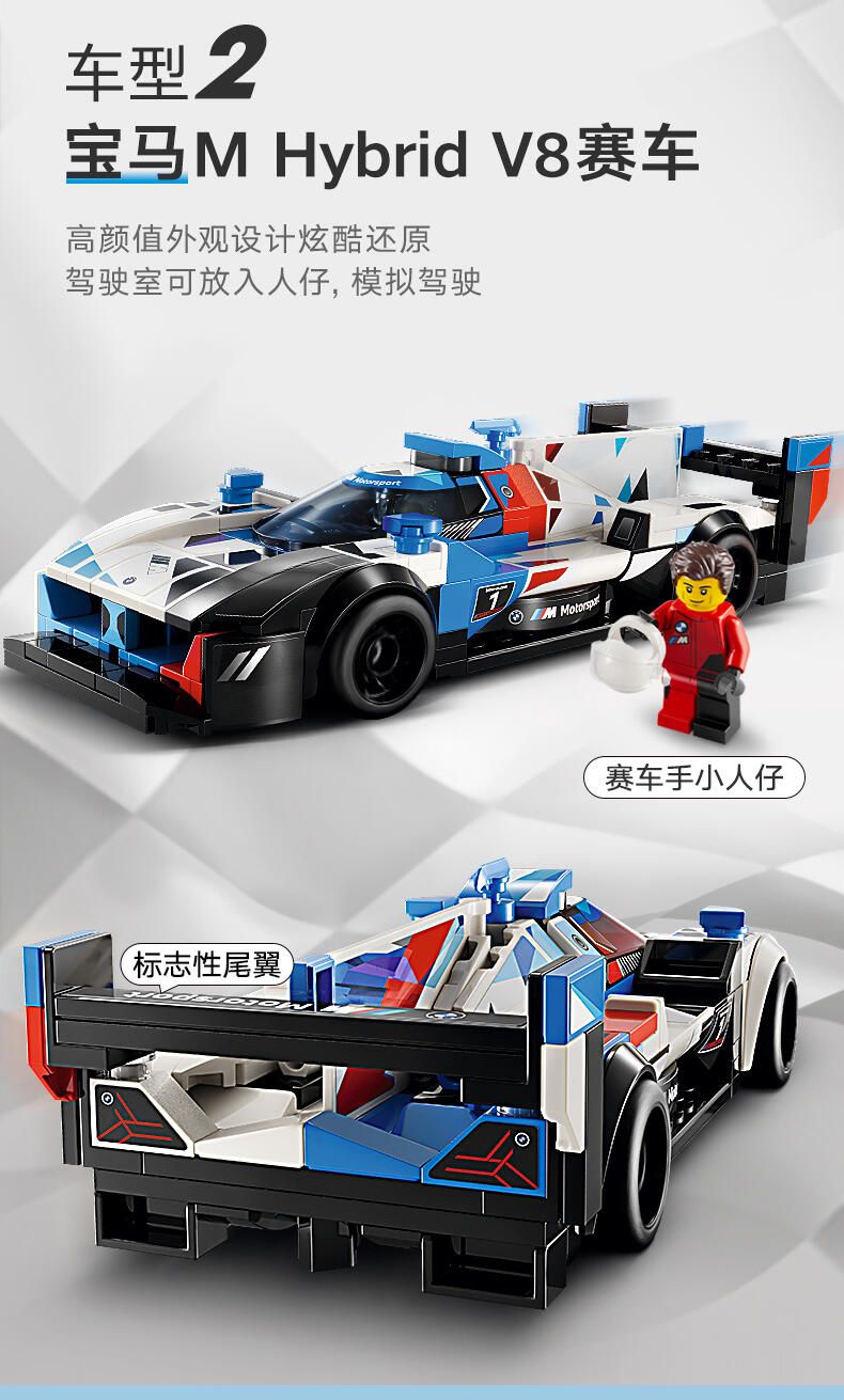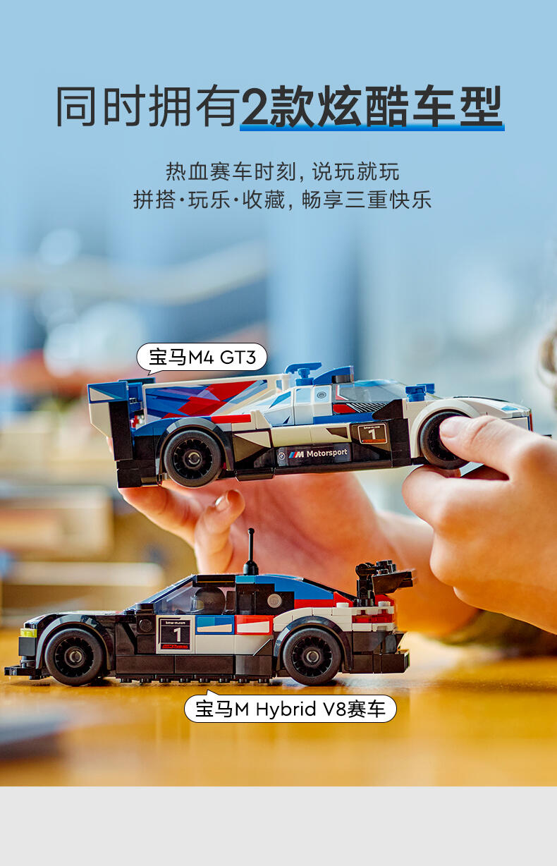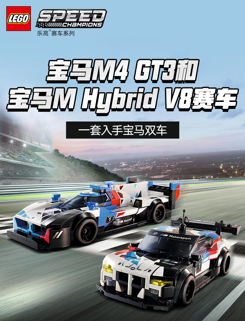 LEGO乐高 Speed Champions超级赛车系列 宝马 M4 GT3 和宝马 M Hybrid V8 赛车