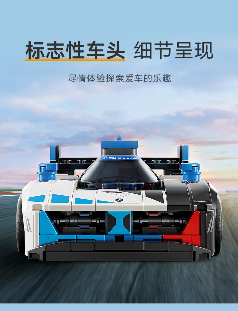 - 逼真的宝马 M Motorsport 设计——每辆乐高®宝马玩具汽车都带有源自真车的细节,包括排气尾管、扩散器、尾翼、BMW M Motorsport 专用色调及内部细节