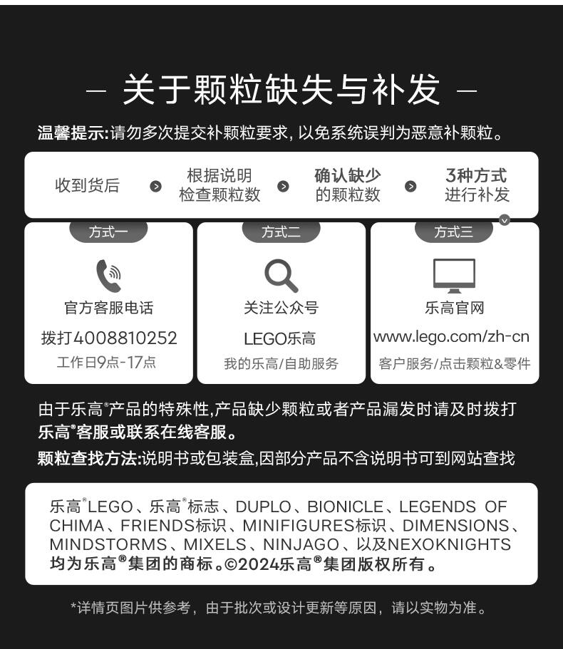 - 尺寸——这款拼搭套装内装 676 块组件,包含宝马 M4 GT3 模型,其尺寸为:高 6 厘米(2.5 英寸)、长 16 厘米(6.5 英寸)和宽 7 厘米(2.5 英寸)