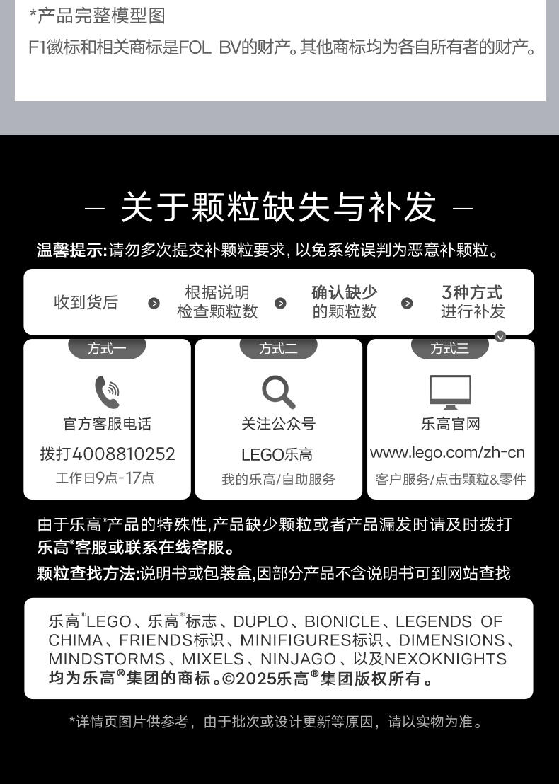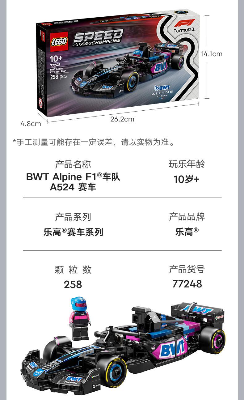 LEGO乐高 超级赛车系列 77248 BWT Alpine F1 车队 A524 赛车