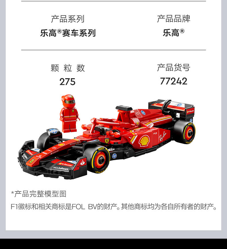 LEGO乐高 超级赛车系列 77242 法拉利 SF-24 F1 赛车