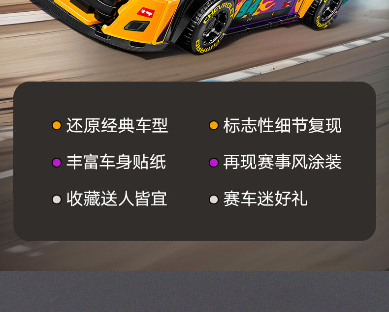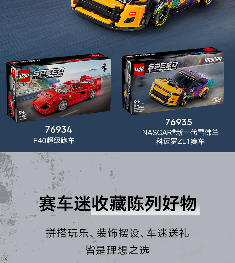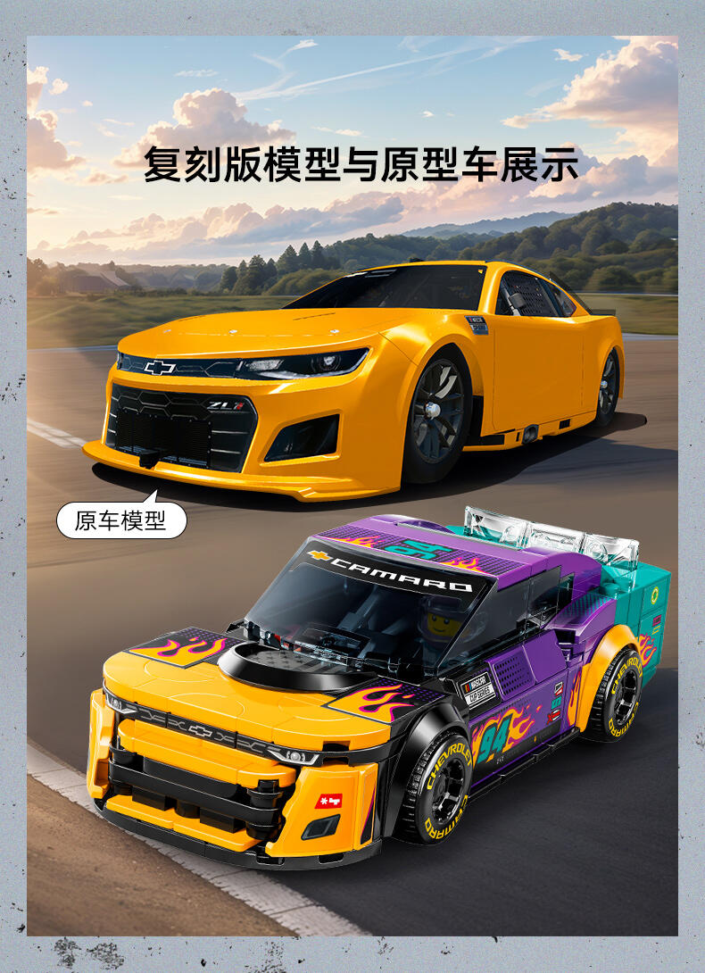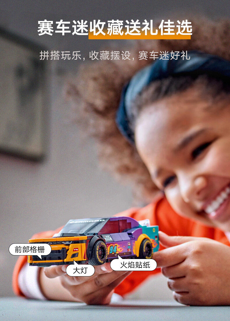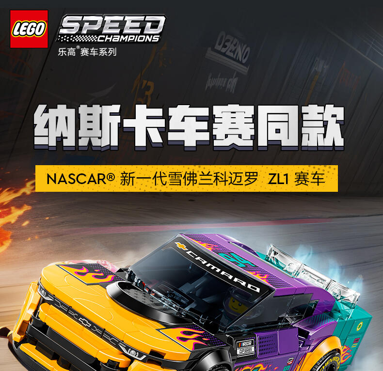 “9岁以上的男孩和女孩以及NASCAR粉丝可以收集、建造、玩和展示这款乐高速度冠军NASCAR下一代雪佛兰Camaro ZL1(76935)玩具车。这款功能强大的赛车以鲜艳的颜色和火焰装饰,包括NASCAR杯系列赛中真实赛车的设计细节。