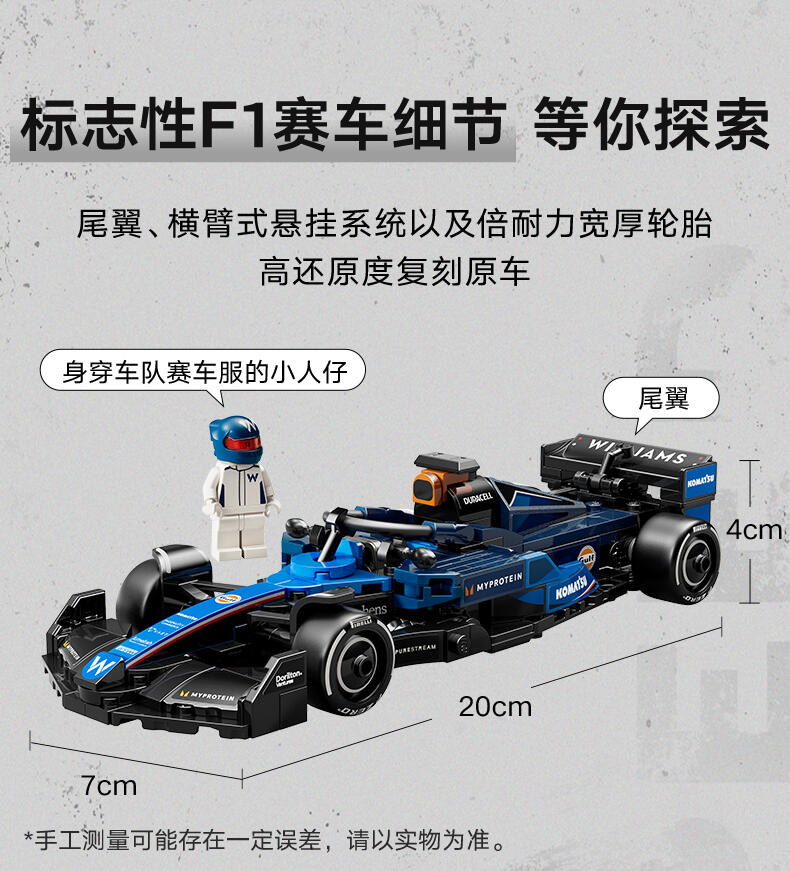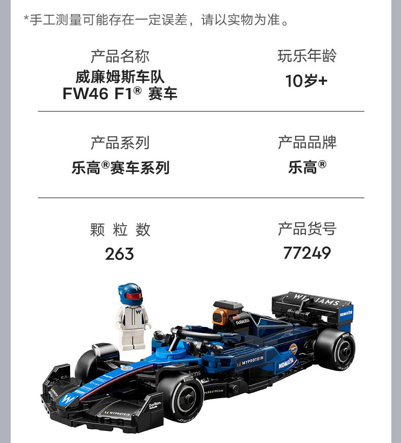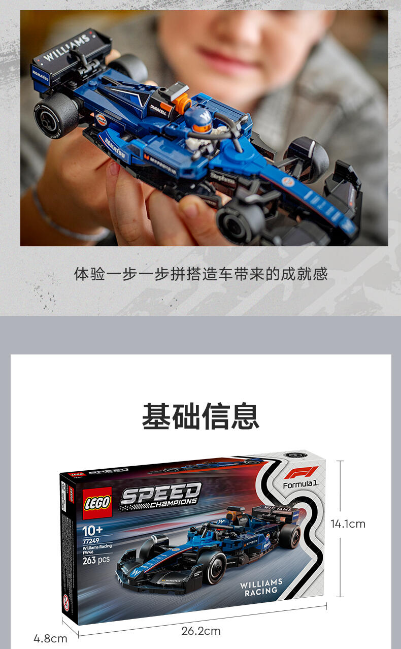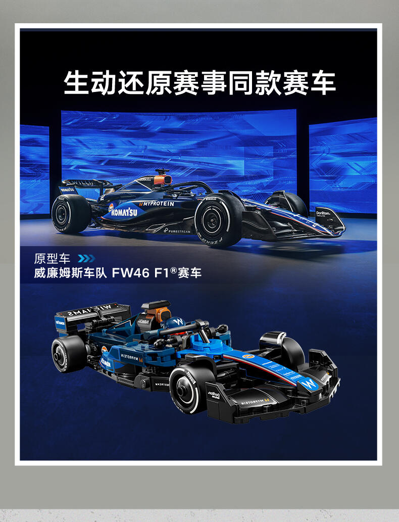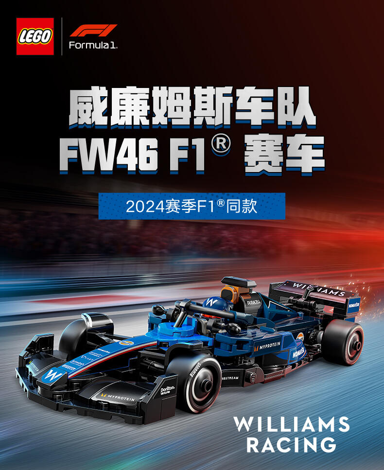 LEGO乐高 超级赛车系列 77249 威廉姆斯车队 FW46 F1 赛车