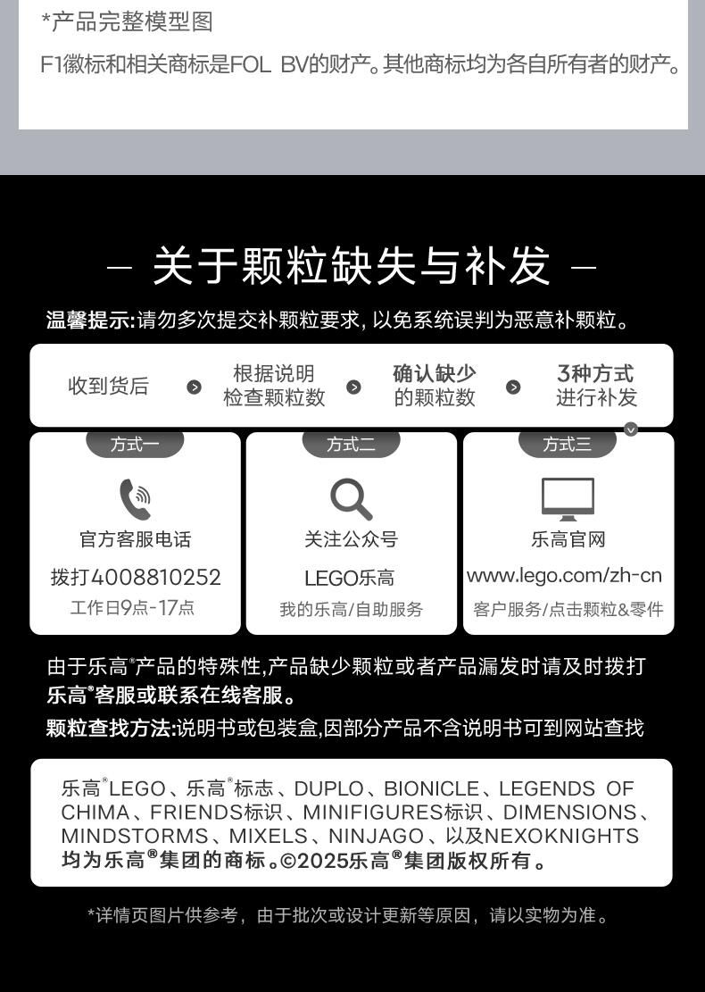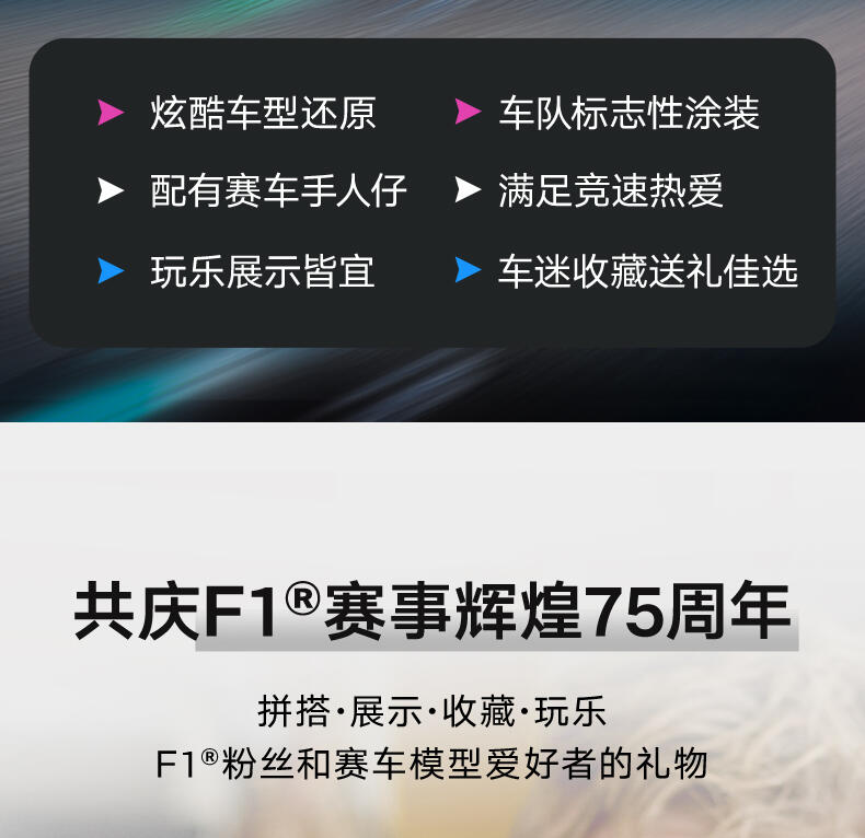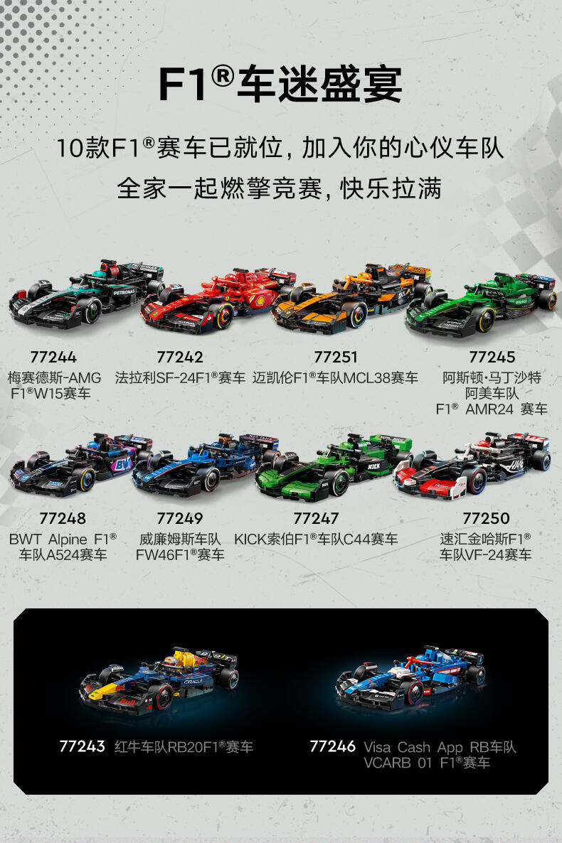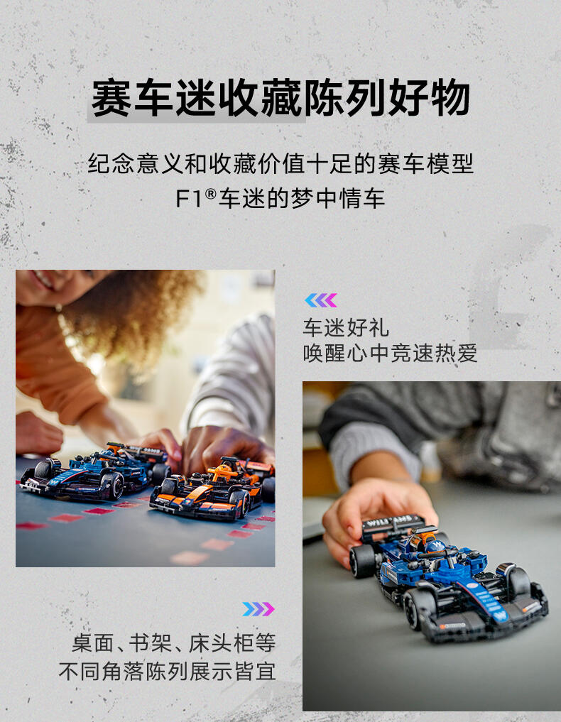 LEGO peed Champions Williams Racing FW46 F1 车(77249)将为10岁及以上的男孩和女孩带来超快的F1 事。儿童和成人收藏家可以建造和欣赏这款F1赛车,其设计细节与2024年F1赛季参赛的真实版本相同。F1车型的驾驶舱可以通过抬起光环、后翼、叉骨悬架、赞助商贴花和印有“倍耐力”字样的宽后轮胎来打开。这款可构建的F1玩具包括一个穿着威廉姆斯赛车服的司机迷你像和一个放在驾驶舱里的带翼头盔。乐高速度冠军套装允许儿童和赛车迷制作一些世界上最著名的汽车模型,包括2024赛季的其他F1赛车(单独出售)。每个游戏集都可以使用打印的建筑说明或LEGO Builder应用程序创建,该应用程序将指导您和您的孩子进行有趣的建筑冒险。
