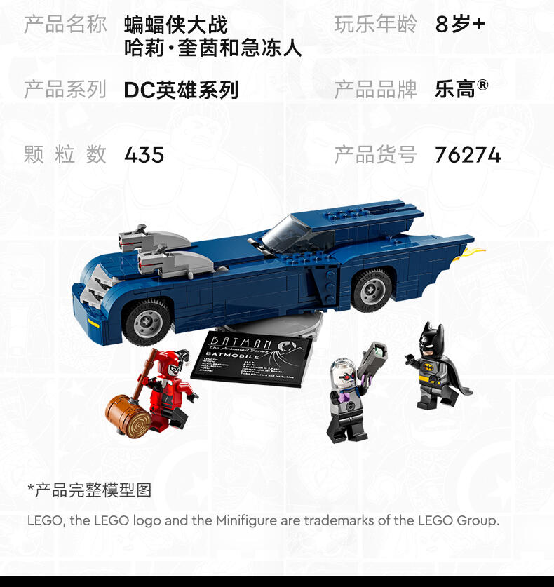 LEGO乐高 超级英雄系列 76274 蝙蝠侠大战哈莉·奎茵和急冻人