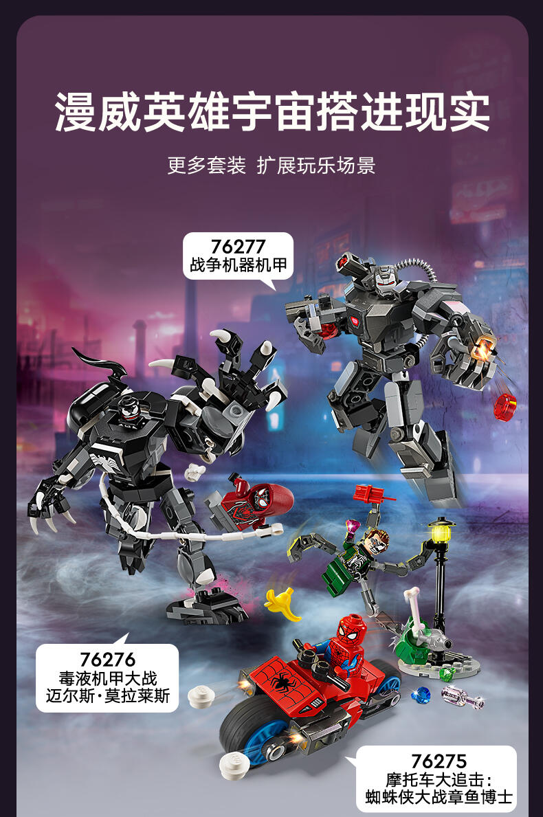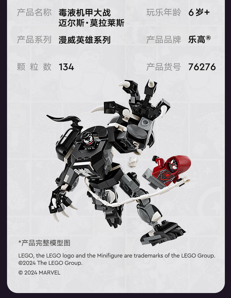 可以拼搭的超级英雄玩具——借助这款乐高 威毒液机甲大战迈尔斯·莫拉莱斯,将精彩的漫威冒险放到 6 岁及以上男孩和女孩的手中