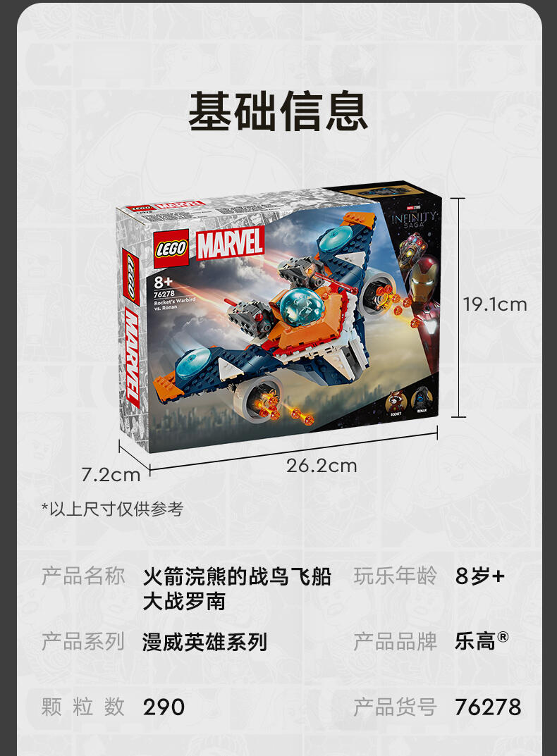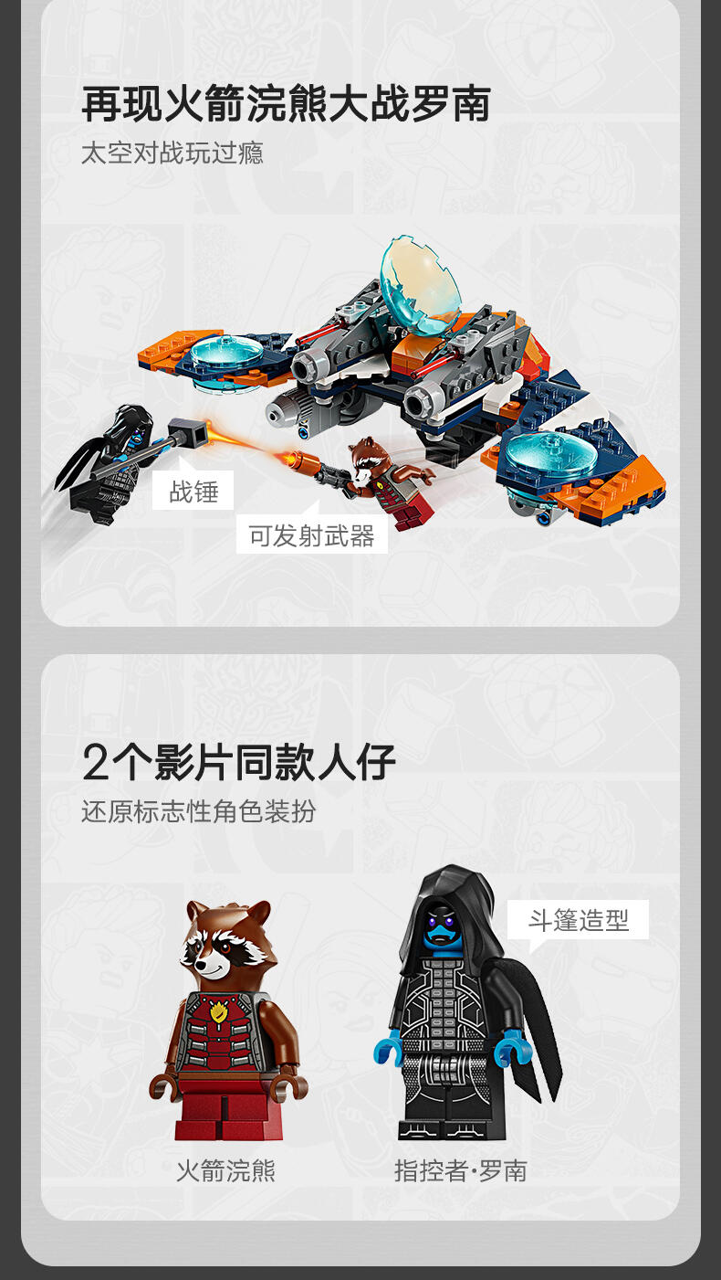 LEGO乐高 超级英雄系列 76278 火箭流熊的战鸟飞船大战罗南