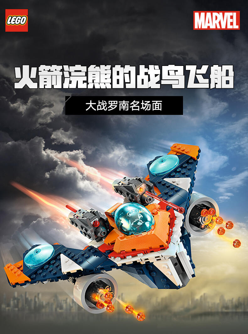 专为孩子准备的太空飞船玩具——玩乐这款乐高 威火箭浣熊的战鸟飞船大战罗南,8 岁及以上的男孩和女孩可以重现漫威影业《银河护卫队》中的行动,还可以展开属于自己的行动