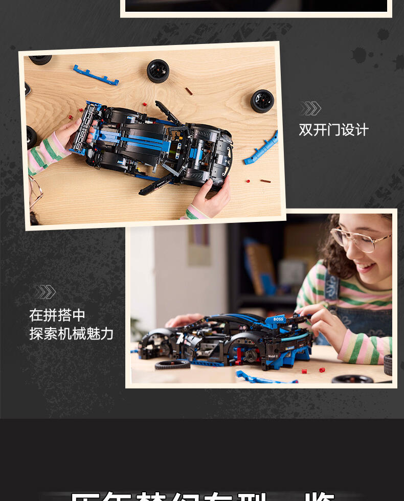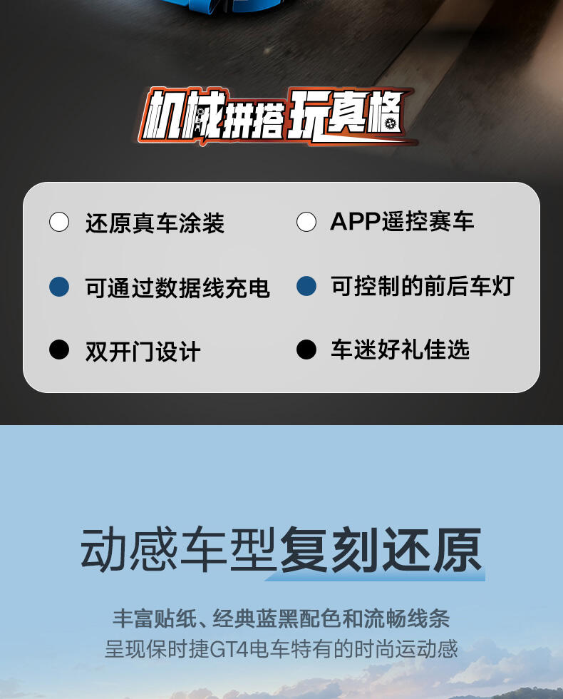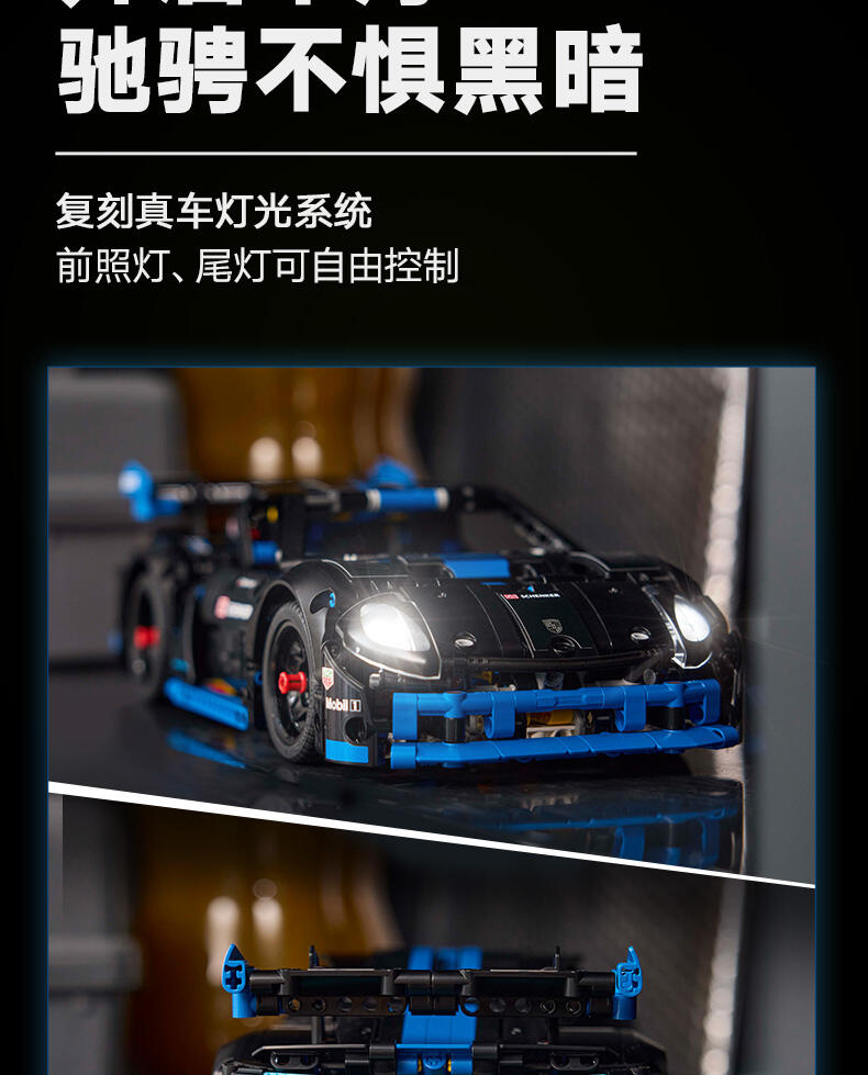 在享受完建造过程后,孩子们可以使用很酷的遥控功能来前后驾驶他们的保时捷玩具车进行测试。随着车门的打开和工作灯的亮起,这款精致的汽车有很多值得探索的地方。