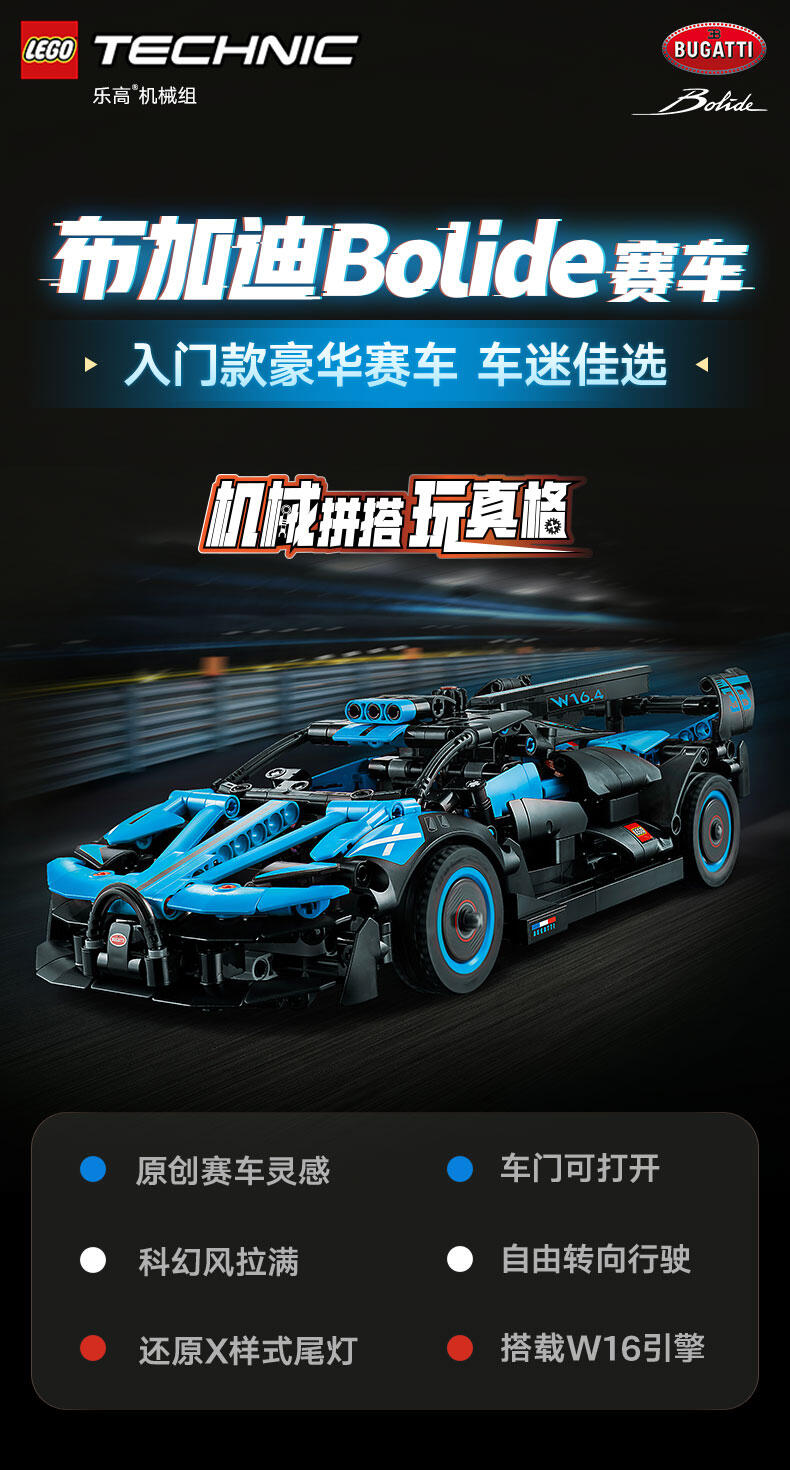 LEGO 乐高 机械组系列 42162 布加迪 Bugatti Bolide Agile Blue