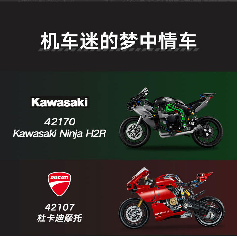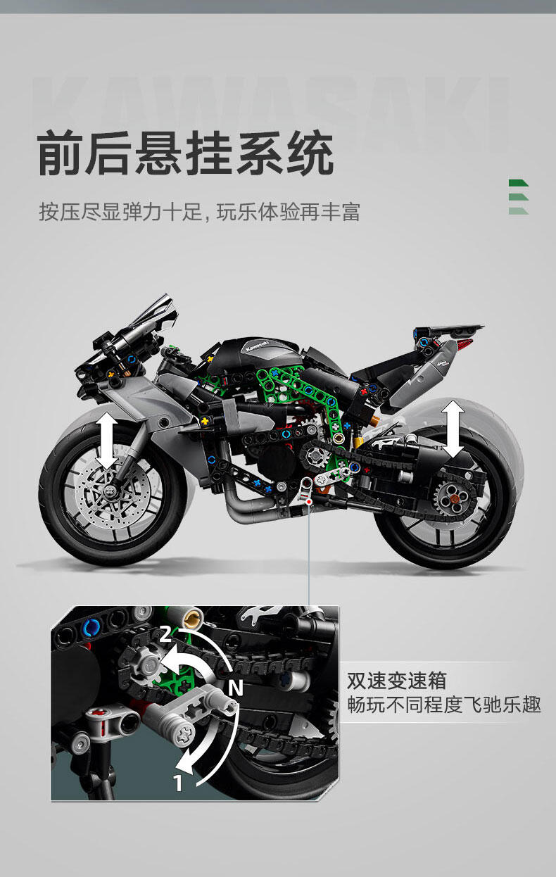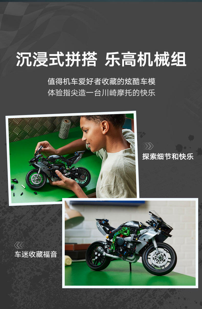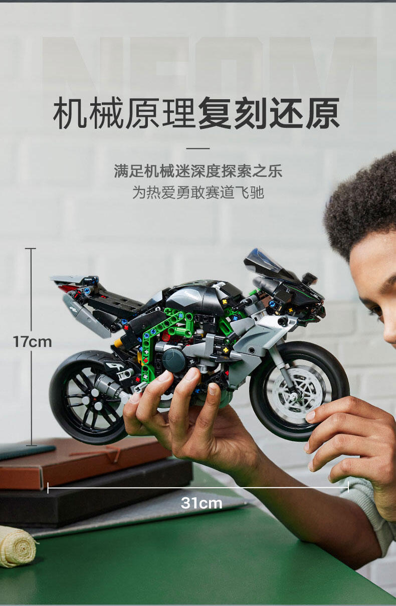 使用这款专为 10 岁及以上孩子准备的乐高 机械组 Kawasaki Ninja H2R 摩托车 (42170) 玩具,启发他们探索工程和技术的世界。这款拼搭套装一丝不苟地重现了世界上速度最快的摩托车之一 (Kawasaki Ninja H2R) 的细节。