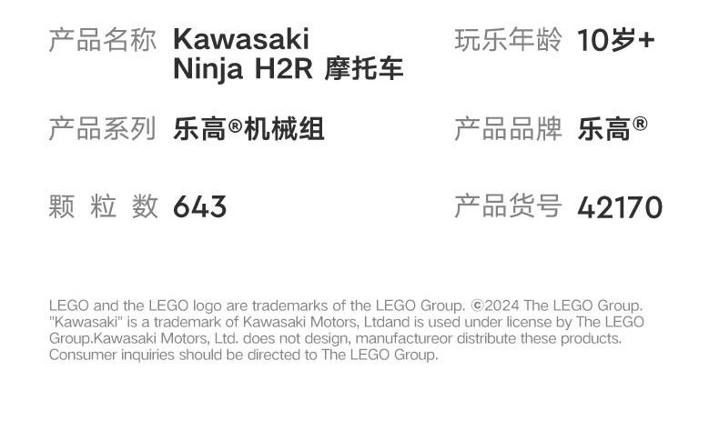 LEGO乐高 机械组系列 42170 Kawasaki Ninja H2R 摩托车