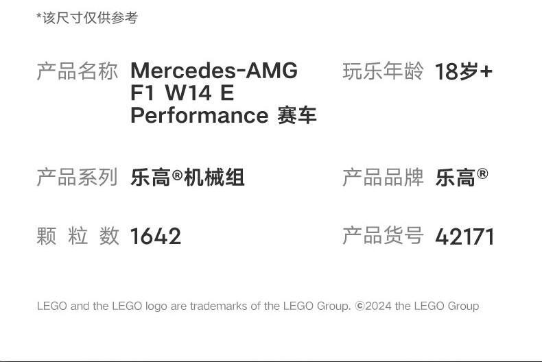 LEGO乐高 机械组系列 42171 Mercedes-AMG F1 W14 E Performance 赛车