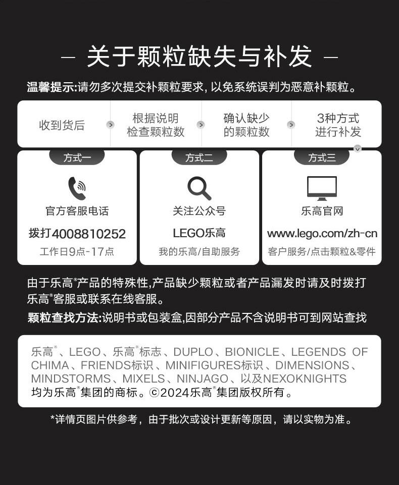 - 三维拼搭说明——借助 LEGO® Builder 应用程序,以前所未有的方式进行拼搭,你可以在其中保存套装,跟踪进度,缩放和旋转三维模型