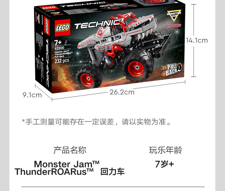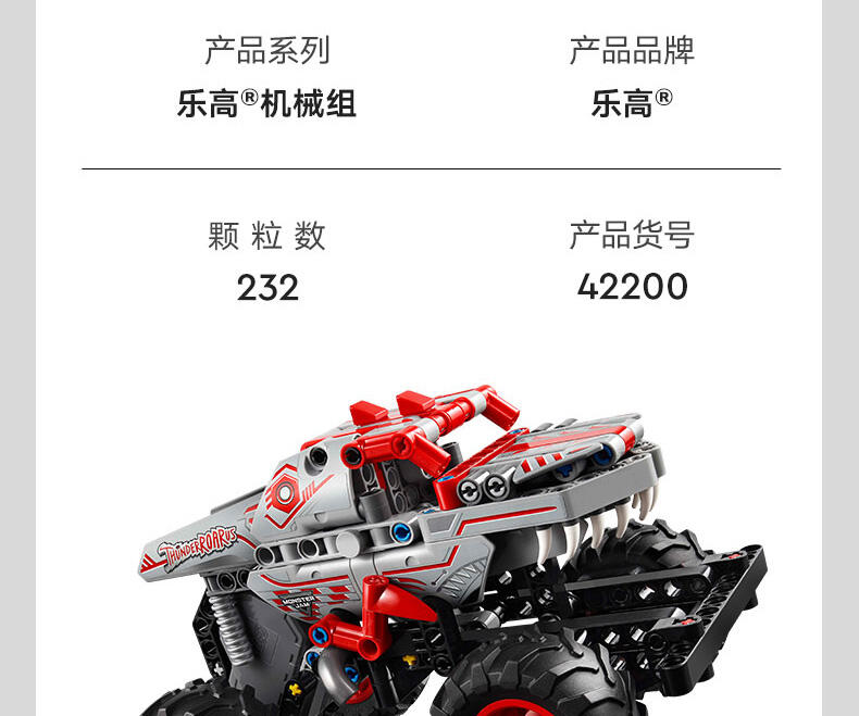 LEGO乐高 机械组 42200 Monster Jam ThunderROARus 回力车