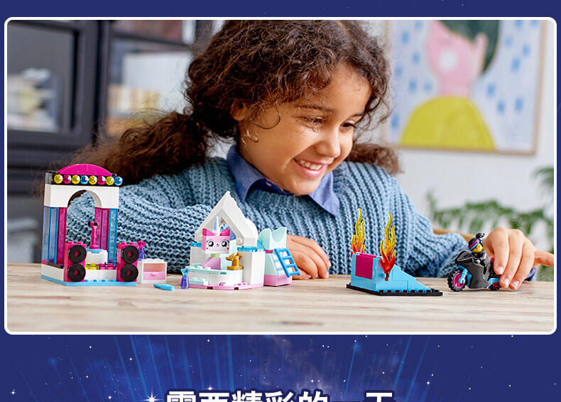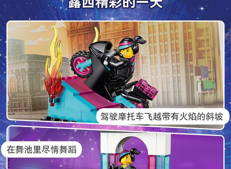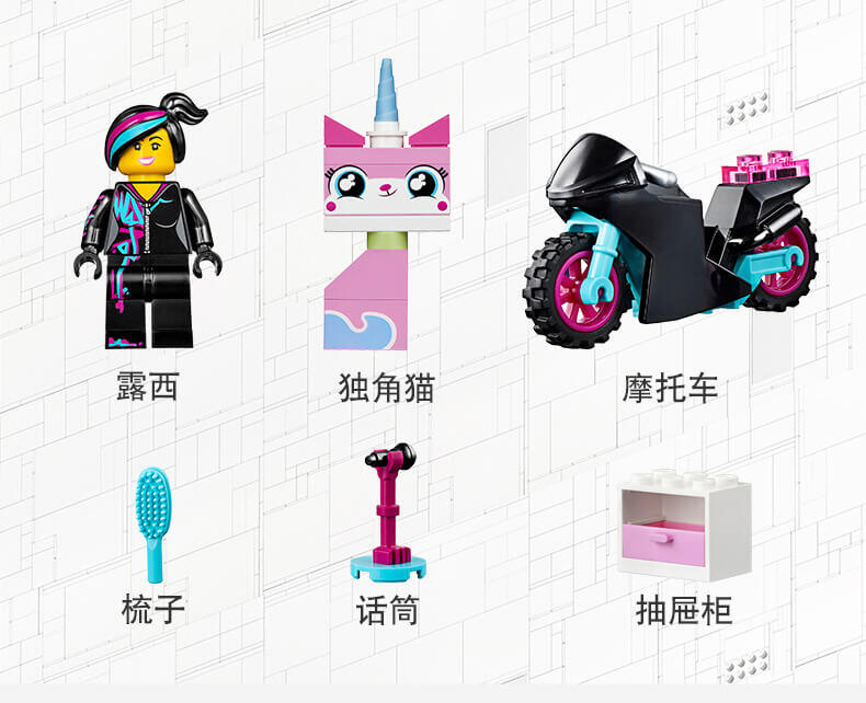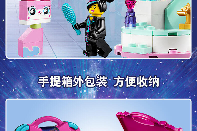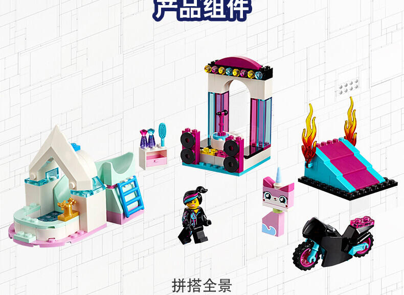 利用THE LEGO MOVIE 2 3-in-1 Lucy’s Builder Box,展现您的大师拼砌技巧!骑着摩托车,从斜坡顶端一跃而下。精心打扮并在舞台上闻乐起舞。然后在独角猫水疗池里放松一下!