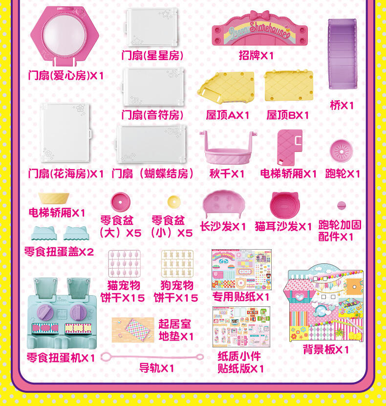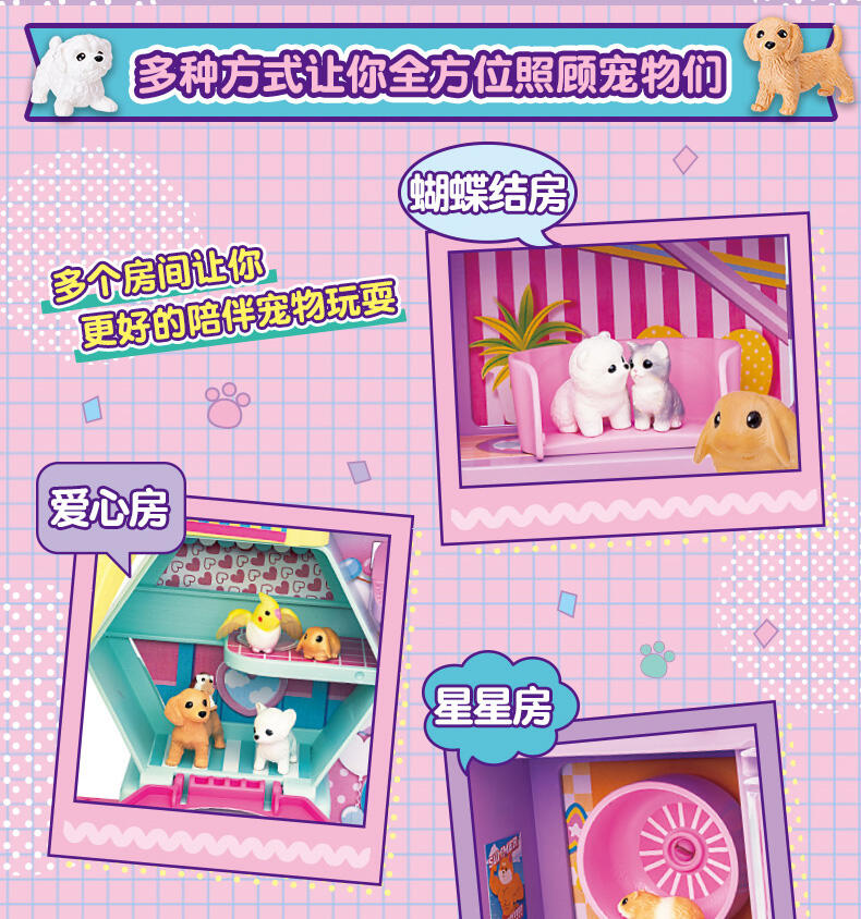 欢迎来到狗狗合租屋!这里是莉香和各种宠物们快乐生活的房子;小狗合租房是莉香和宠物们快乐生活的房子。有5个可以享受照顾游戏的房间。大家最喜欢的零食扭蛋机、秋千、电梯、滑梯等各种各样的gimic!更受欢迎的宠物充分11只,小东西类也充实。