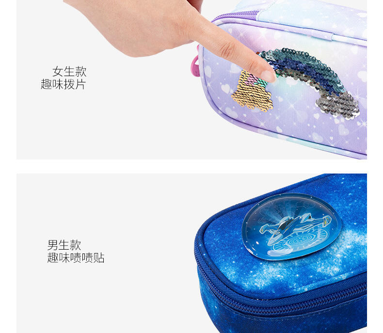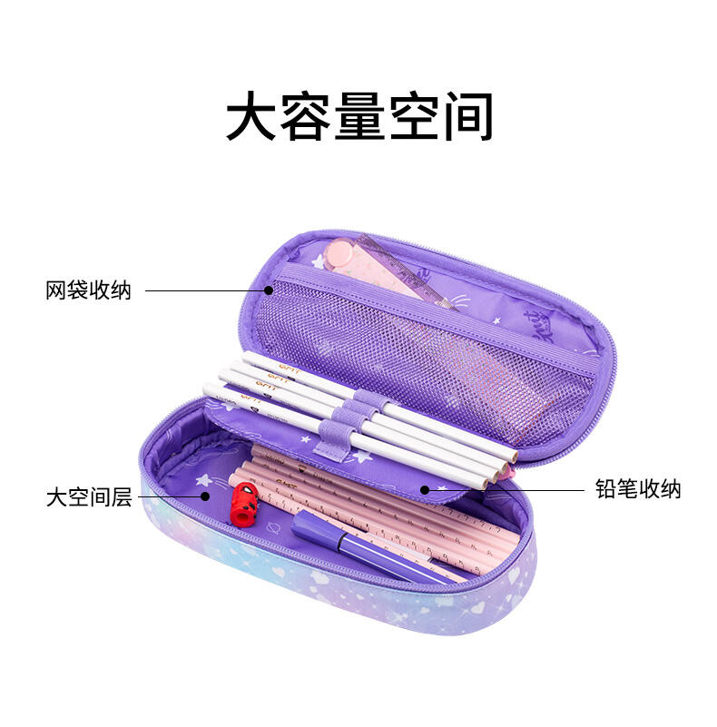大储存空间,科学分区,文具使用更方便 三防面料,防泼水、防油、防污,高效抑菌,提升耐脏能力 100%PRET环保材料,助力绿色环保事业