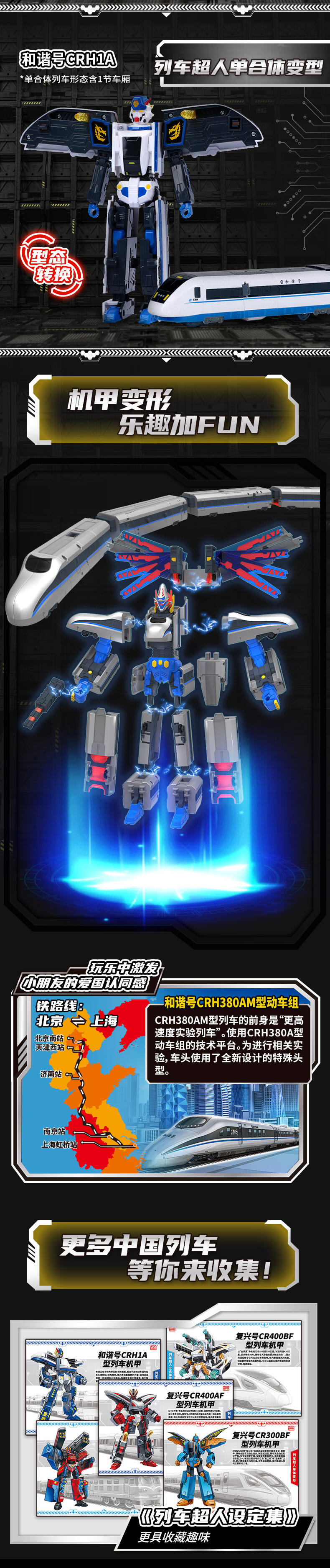和谐号CRH1A型列车机甲,车体采用了较为罕见的不锈钢制造。相比于其他动车组车型车头流线短。体内寄宿着雄狮的力量,如同征战草原一样驰骋在大江南北。有着狮子般不停奋进,勇于探索的精神。