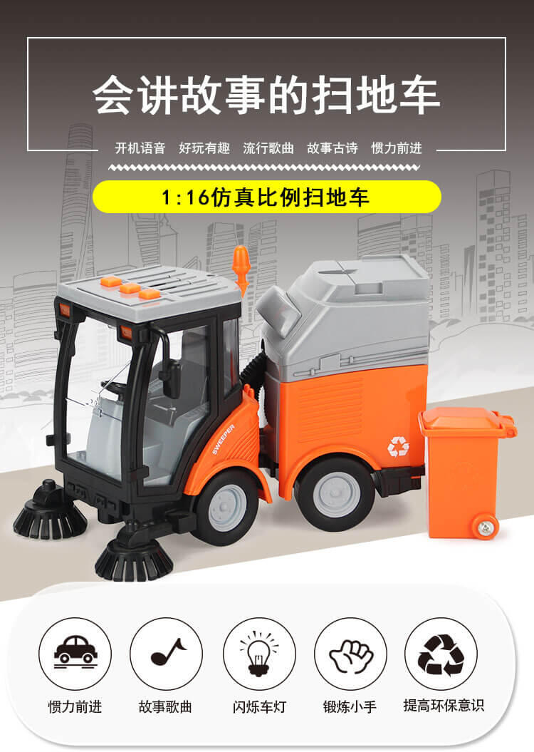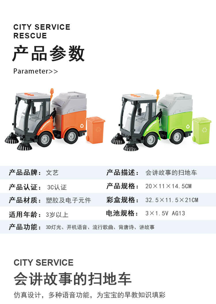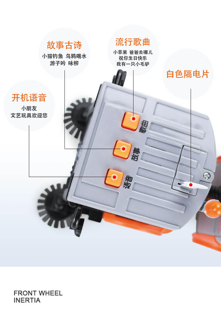 1:16仿真设计优质材质,经久耐用,轩耐摔。车身比较大。车子惯性功能一玩,更适合比较小的孩子。大开窗包装盒送礼,倍有面子。大车身,给宝宝来个大家伙。做工质量精美。产品具有惯性动力,开机语音,流行歌曲,背唐诗讲故事等功能