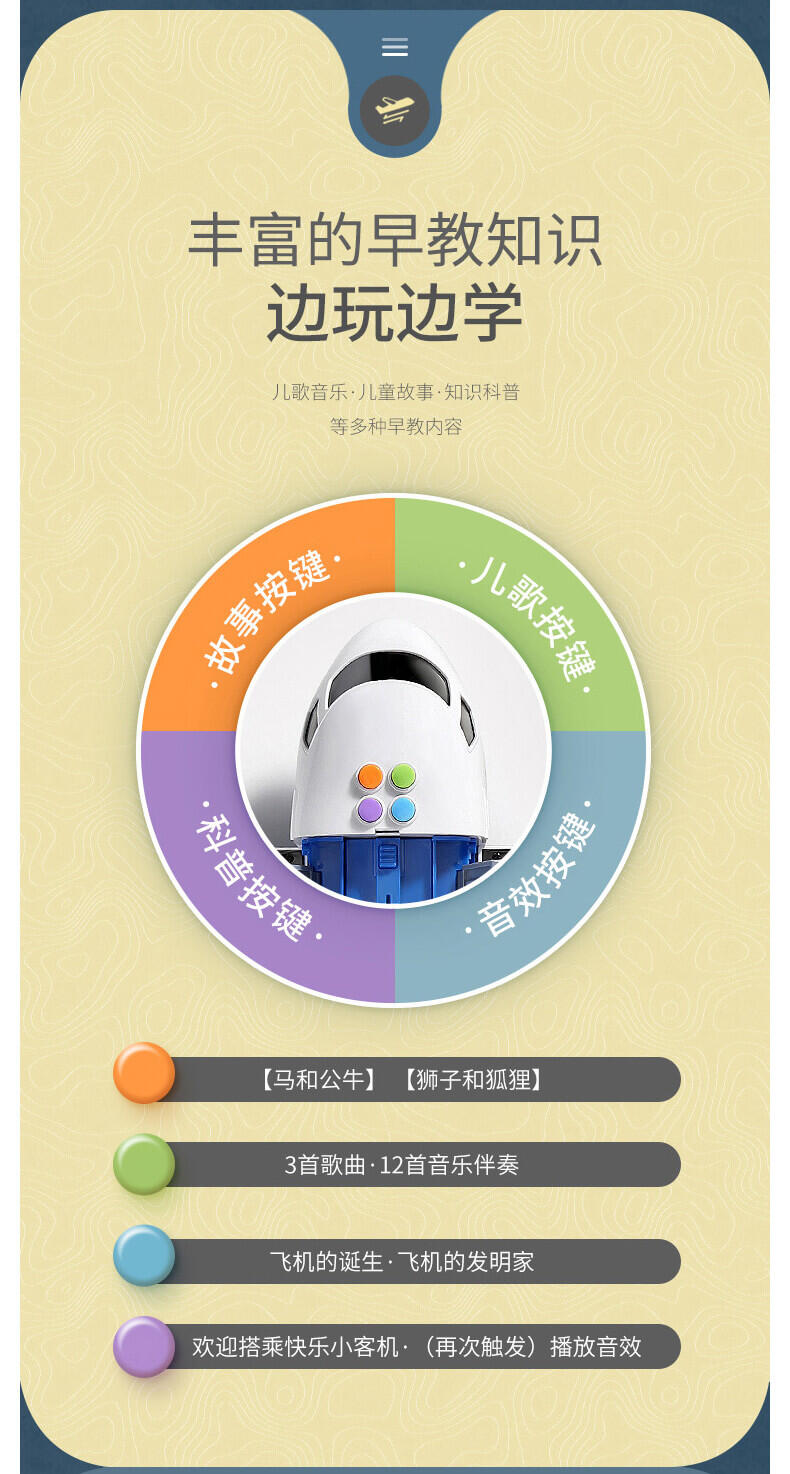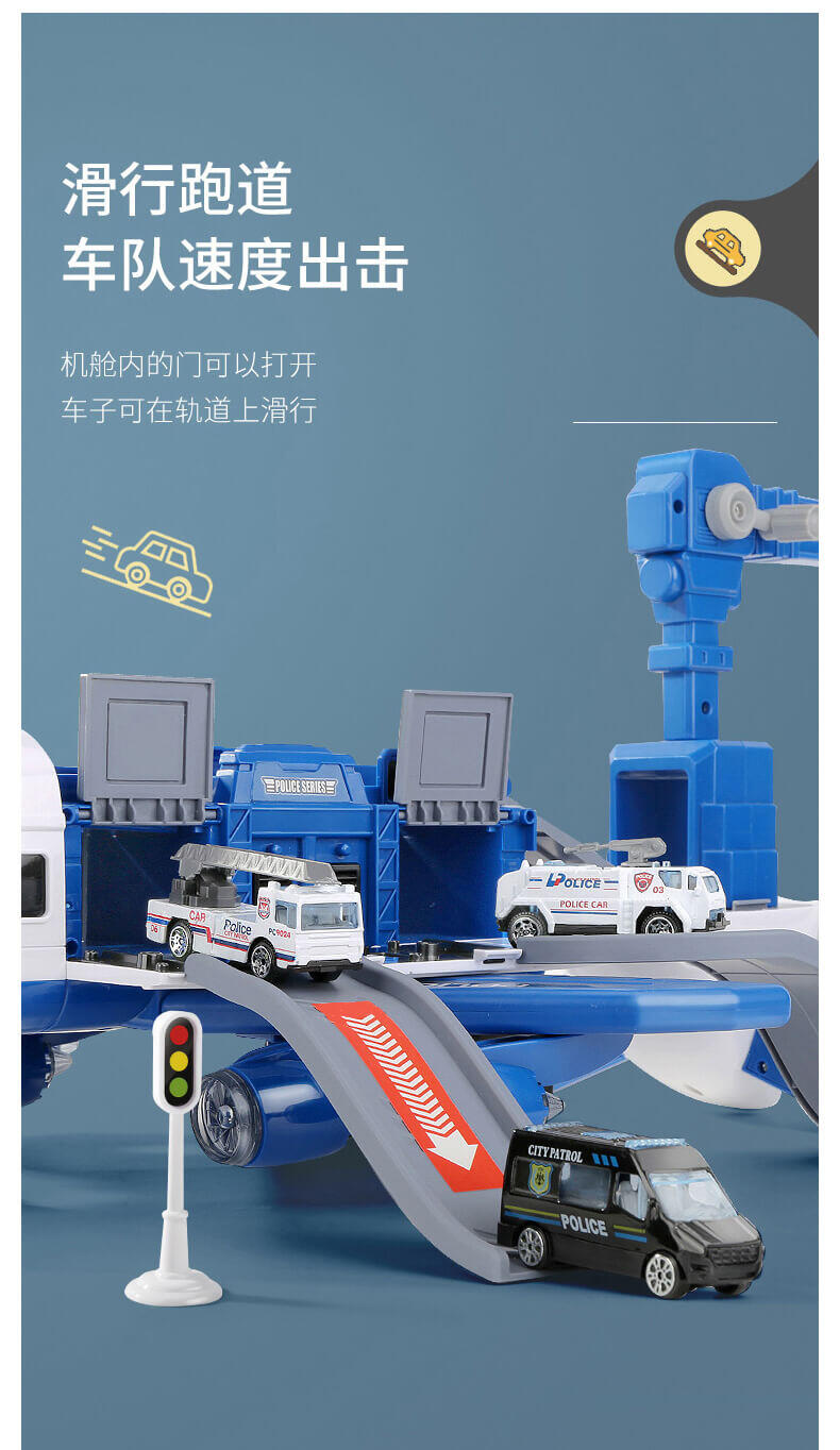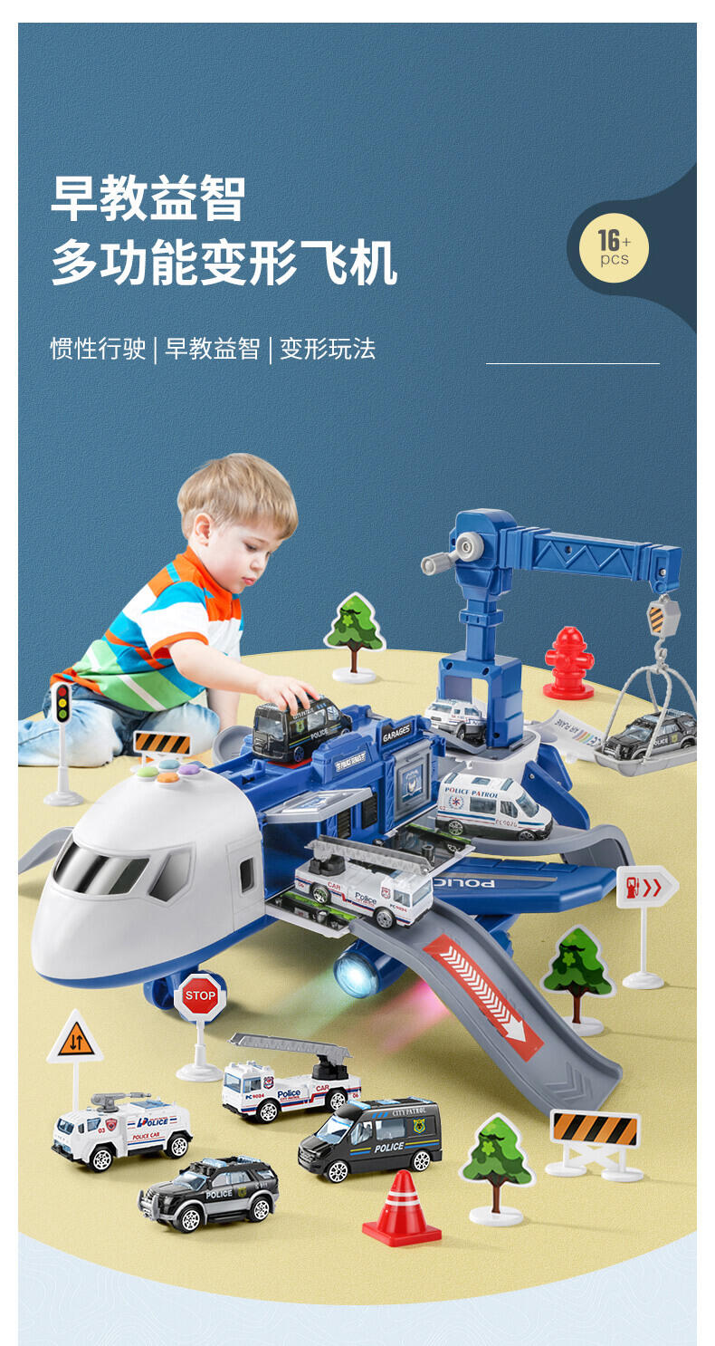 颜色 蓝/白;打开开关,玩具可播放故事,音乐,并伴有灯光,通过惯性驱使玩具飞机行驶玩耍。