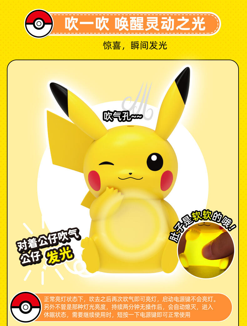 宝可梦超强IP为渠道引流!国内首款宝可梦吹控灯!吹一吹,三种亮度随意切换!新奇好物,软胶材质手感舒适!送礼首选,仪式感满满!人气宝可梦角色,刺激收集!