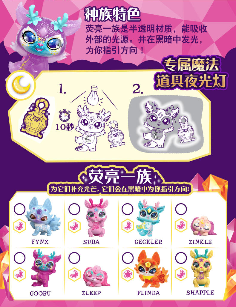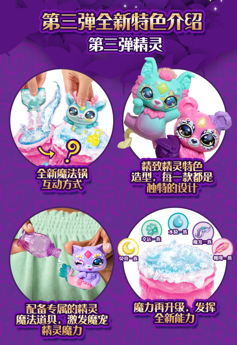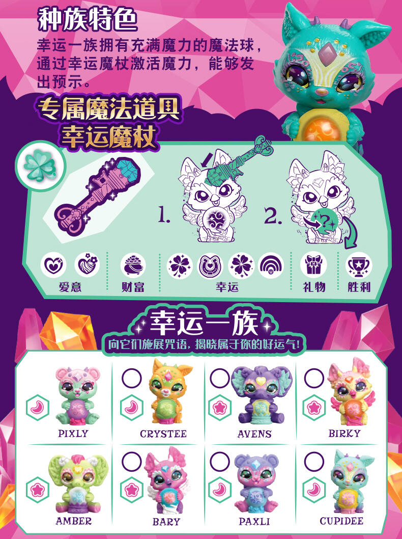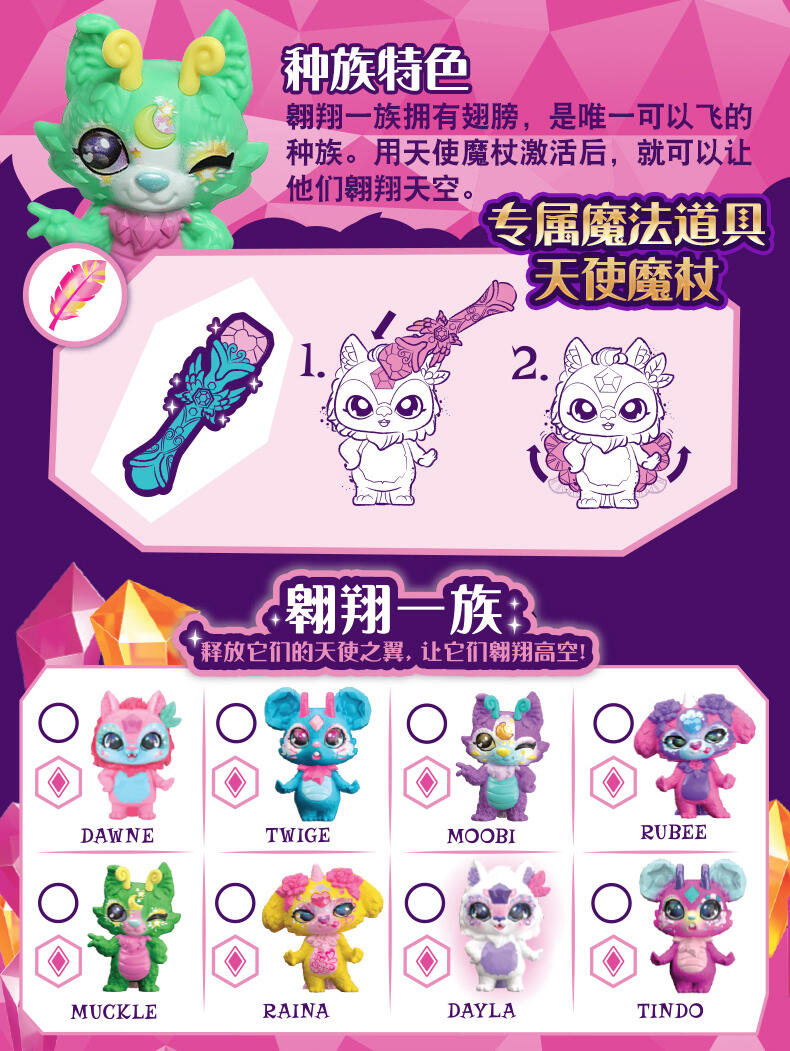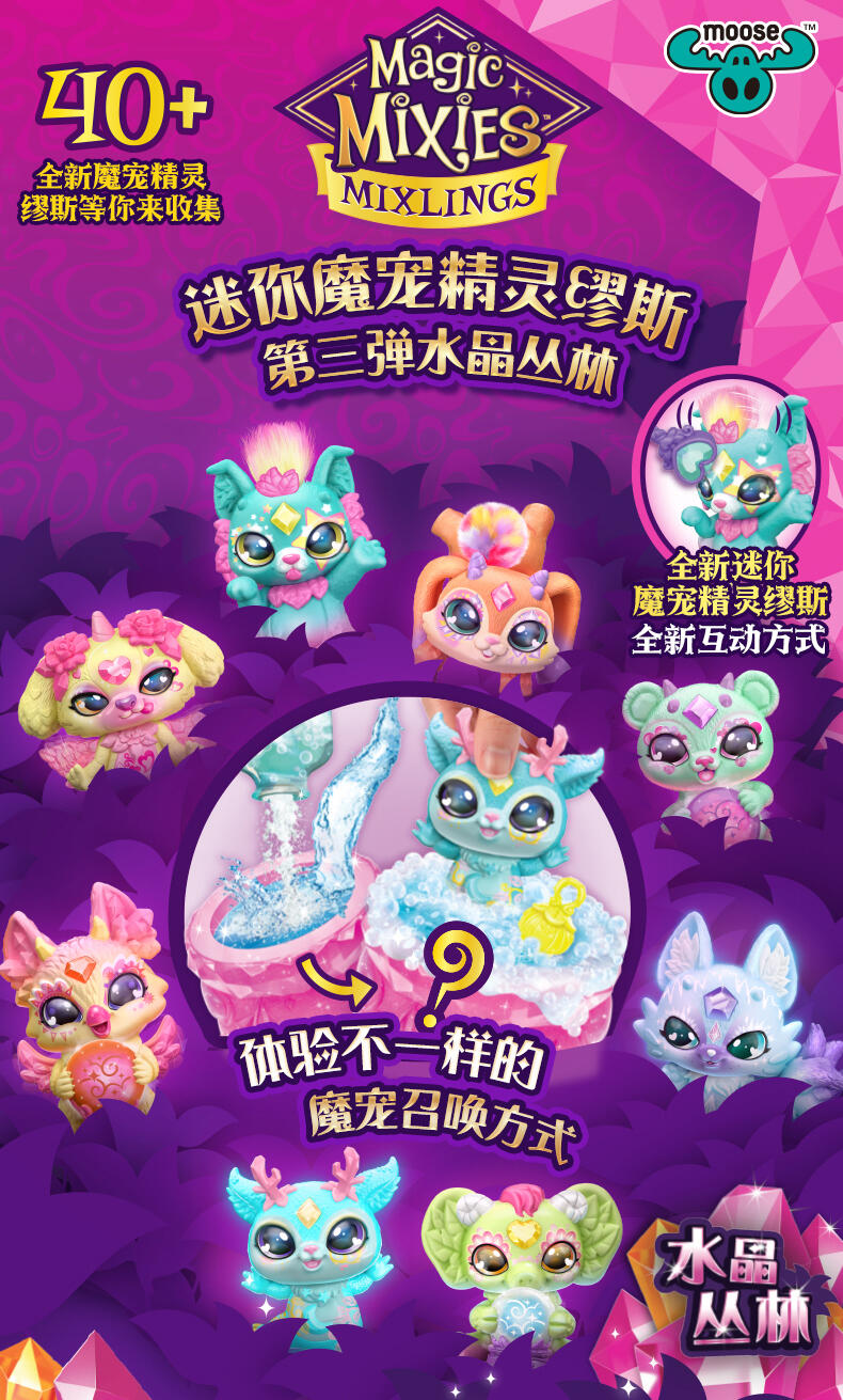 迷你魔宠精灵缪斯与魔宠精灵缪斯同属一个家族! 两只装共有40款迷你魔宠精灵缪斯可供收集 (每只都来自不同的魔法族群)。只需加入神奇的药水配料,就能召唤出其中两款迷你魔宠精灵缪斯!然后,使用壶中附带的魔法道具来让迷你魔宠精灵缪斯展示它的魔力!