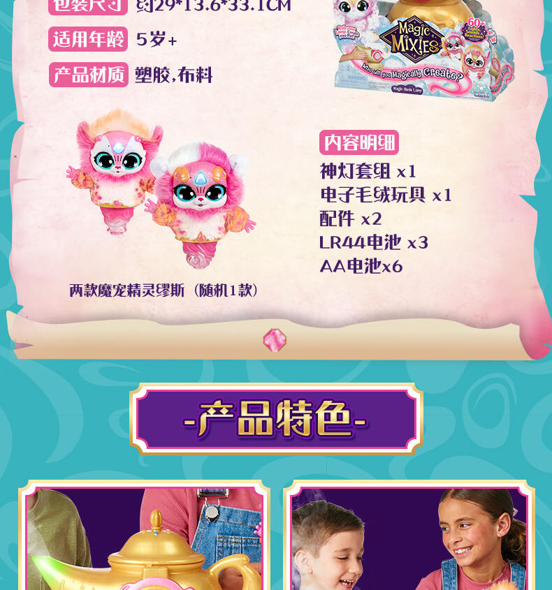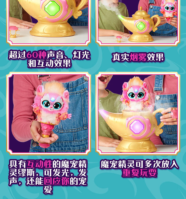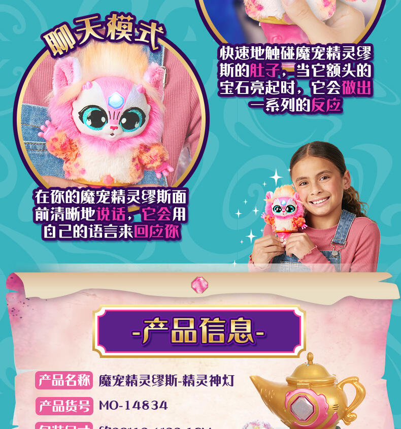 “魔宠精灵缪斯” 系列不变的重要元素——魔法,能让小朋友们在玩耍过程中拥有魔法般的神奇体验,一层一层地揭开和解锁产品内容,创造出陪伴自己的神秘精灵朋友,通过施展魔与其互动。精灵神灯的粉色外表,相信将会很受女孩子们的喜爱。精灵神灯是开窗式的外包装,可以直接看到并触摸到神灯,充满了神秘气息。这次的精灵神灯可以创造出的精灵玩偶共有2个款式,将会随机创造出其中1款。