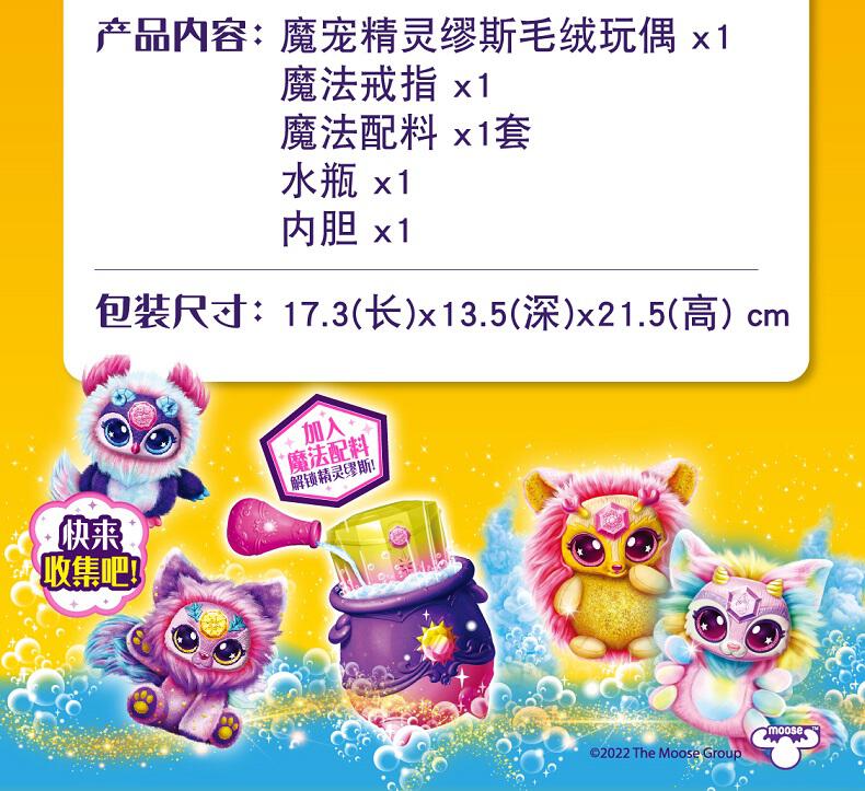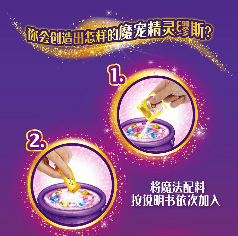 使用惊喜魔法宝壶,体验神奇的魔法。 宝壶里配有魔法配料,依次加入后看着你的魔宠精灵缪斯神奇地出现!每款魔宠精灵配有专属的戒指。按压精灵额头宝石,注意观察眼睛的变化! 一共有4个款式,你会创造出哪一个可爱的魔宠精灵缪斯呢?