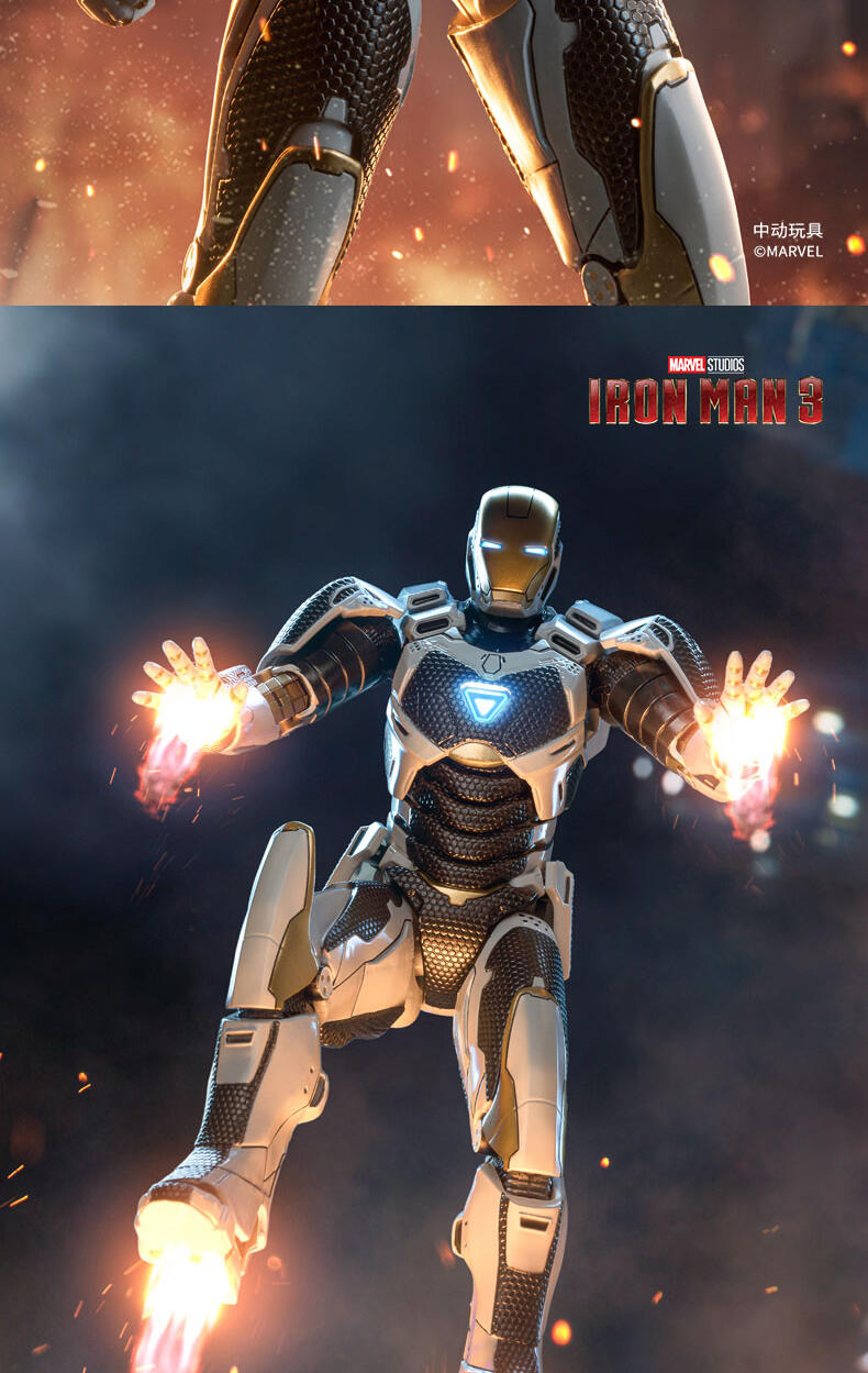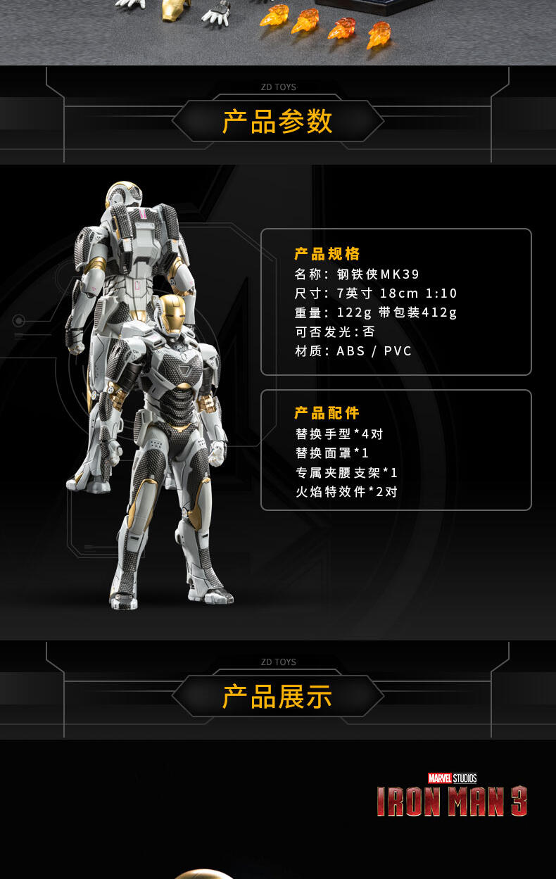 漫威十周年系列钢铁侠MK39,含多种可替换手型及火焰配件。