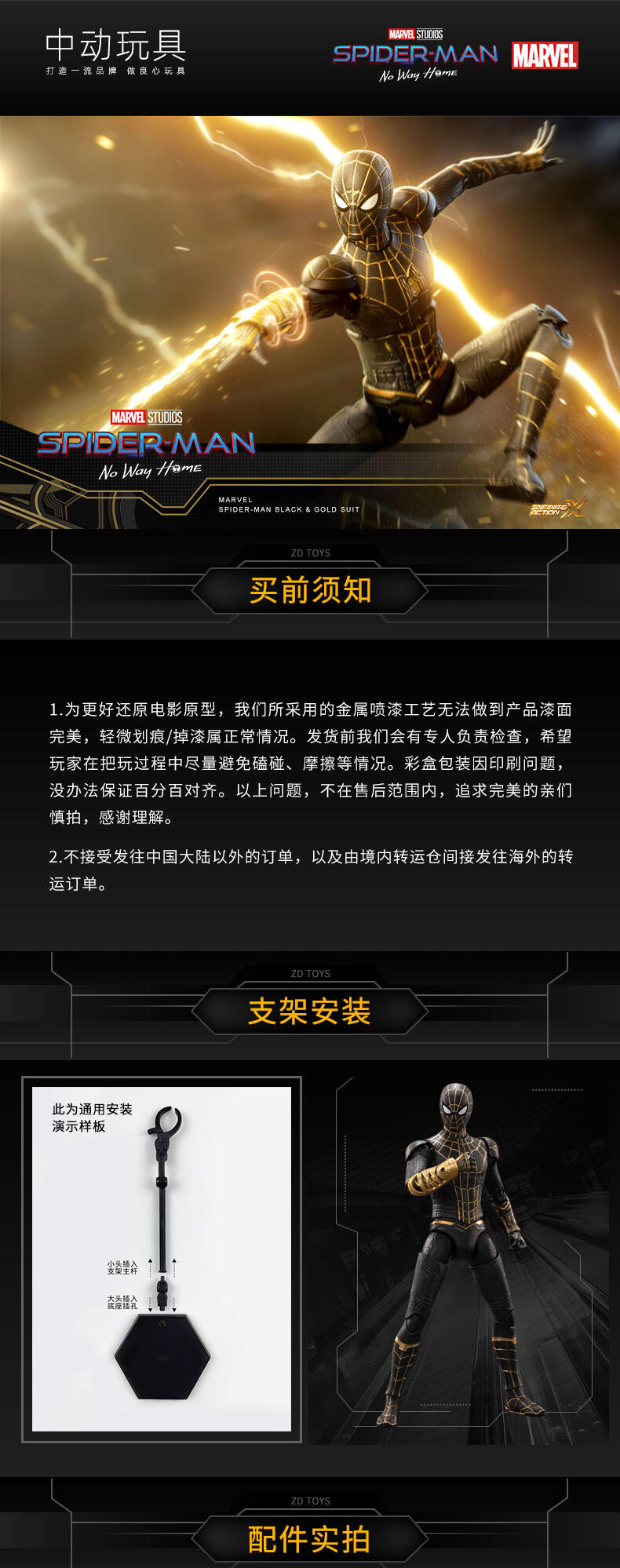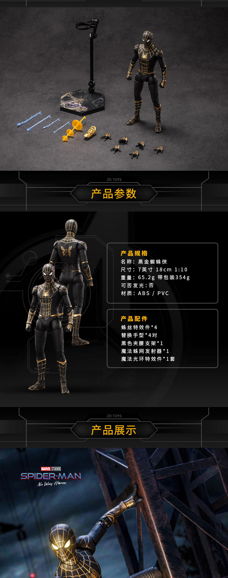做工精美,还原度高,性价比高,适合收藏 《蜘蛛侠3:无家可归》承接《蜘蛛侠2:远离家乡》,蜘蛛侠的