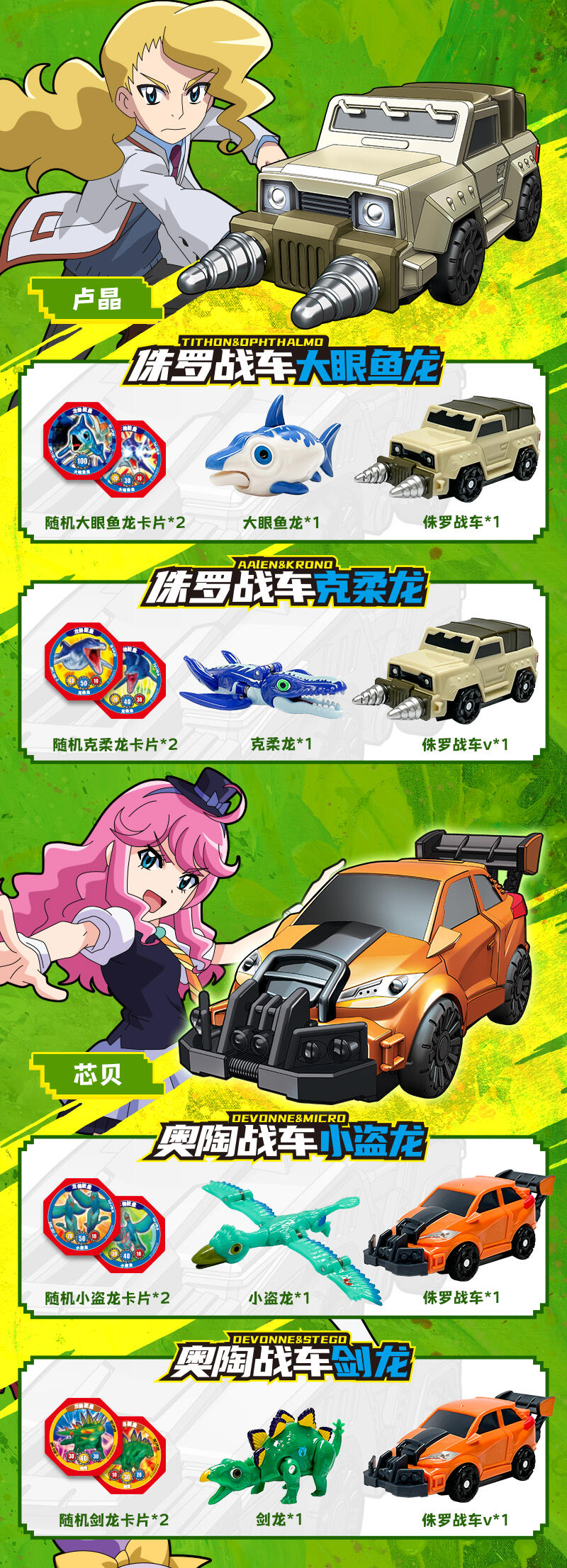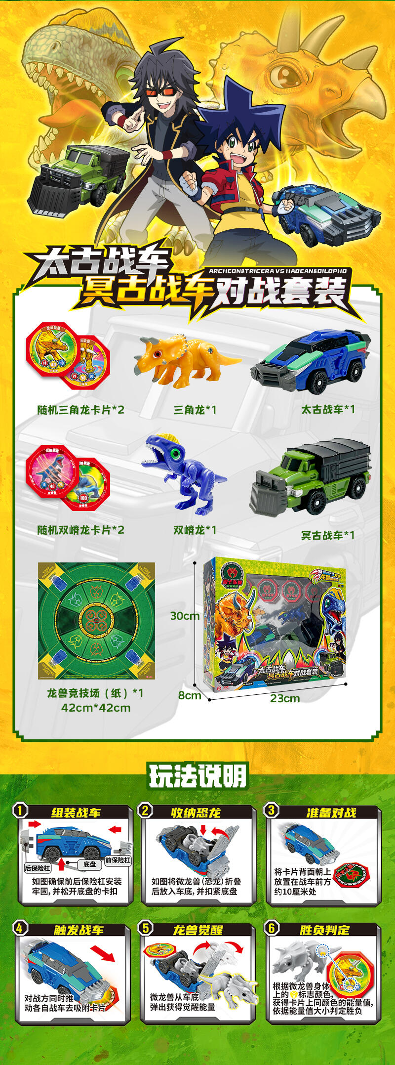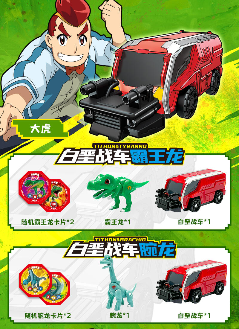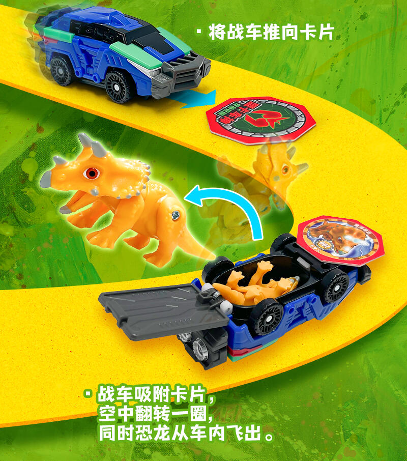 1.炫酷战车搭配迷你恐龙 2.卡片触发,一碰变形