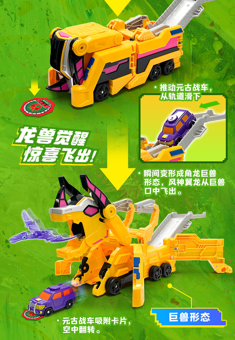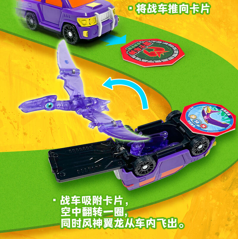 1.炫酷战车搭配迷你恐龙 2.卡片触发,一碰变形