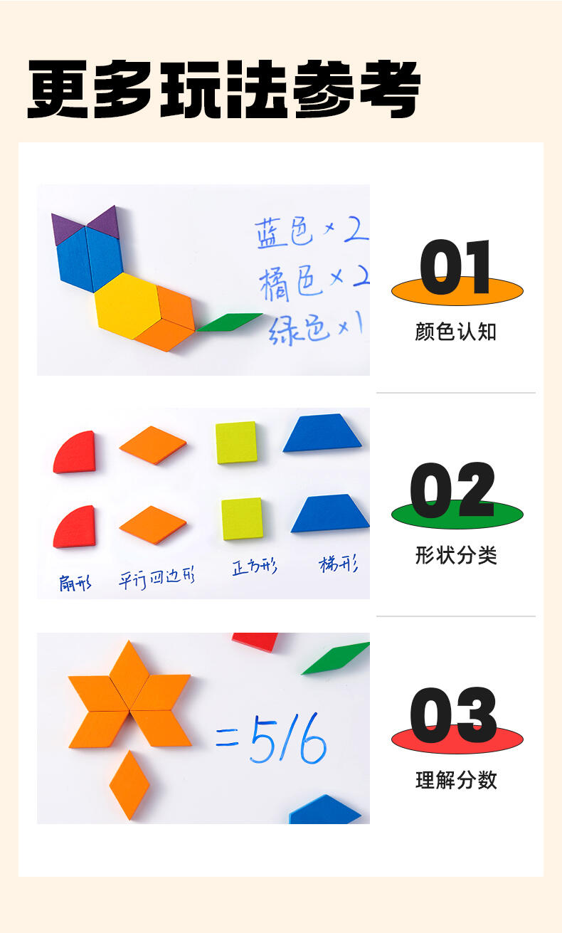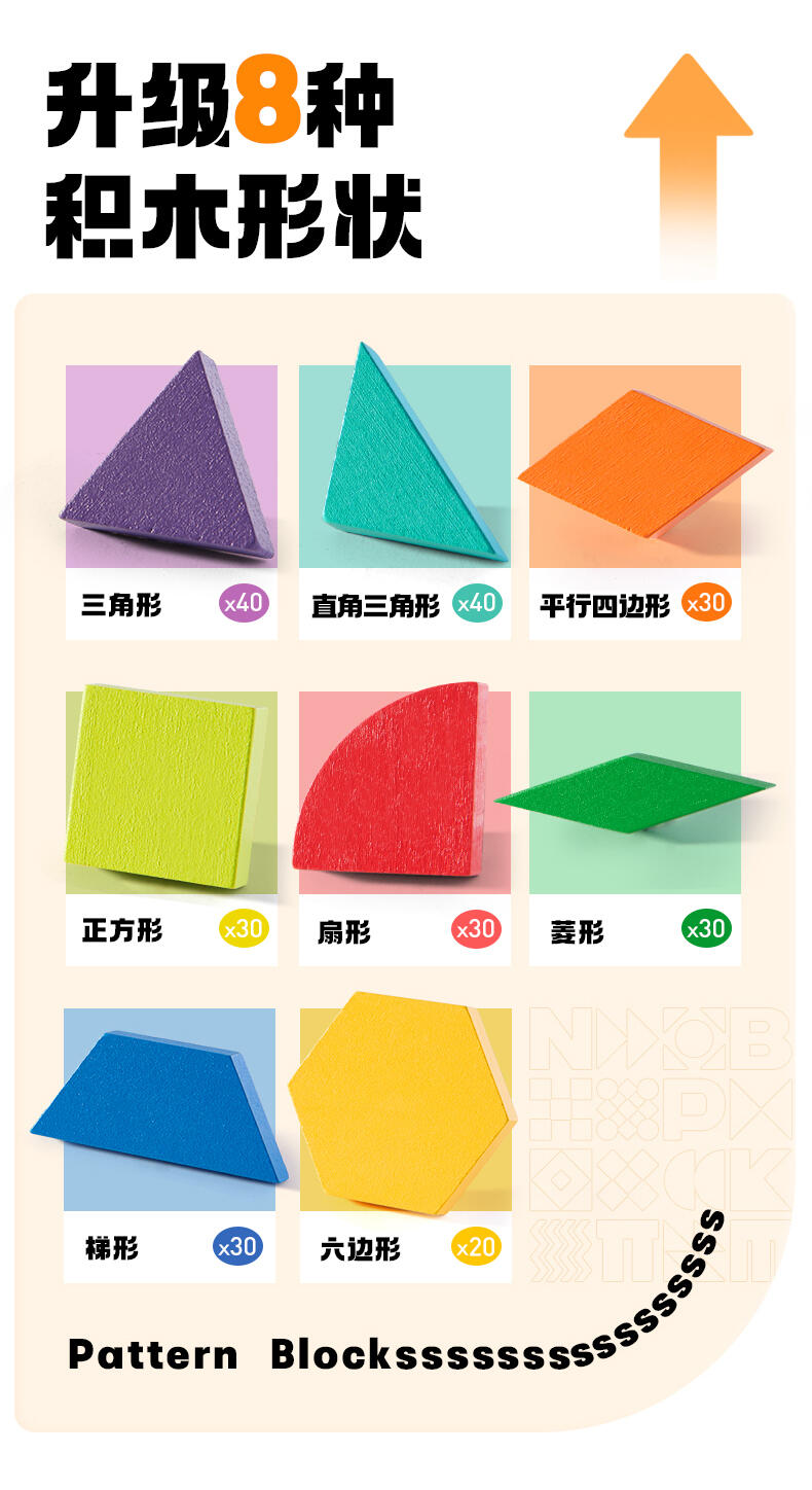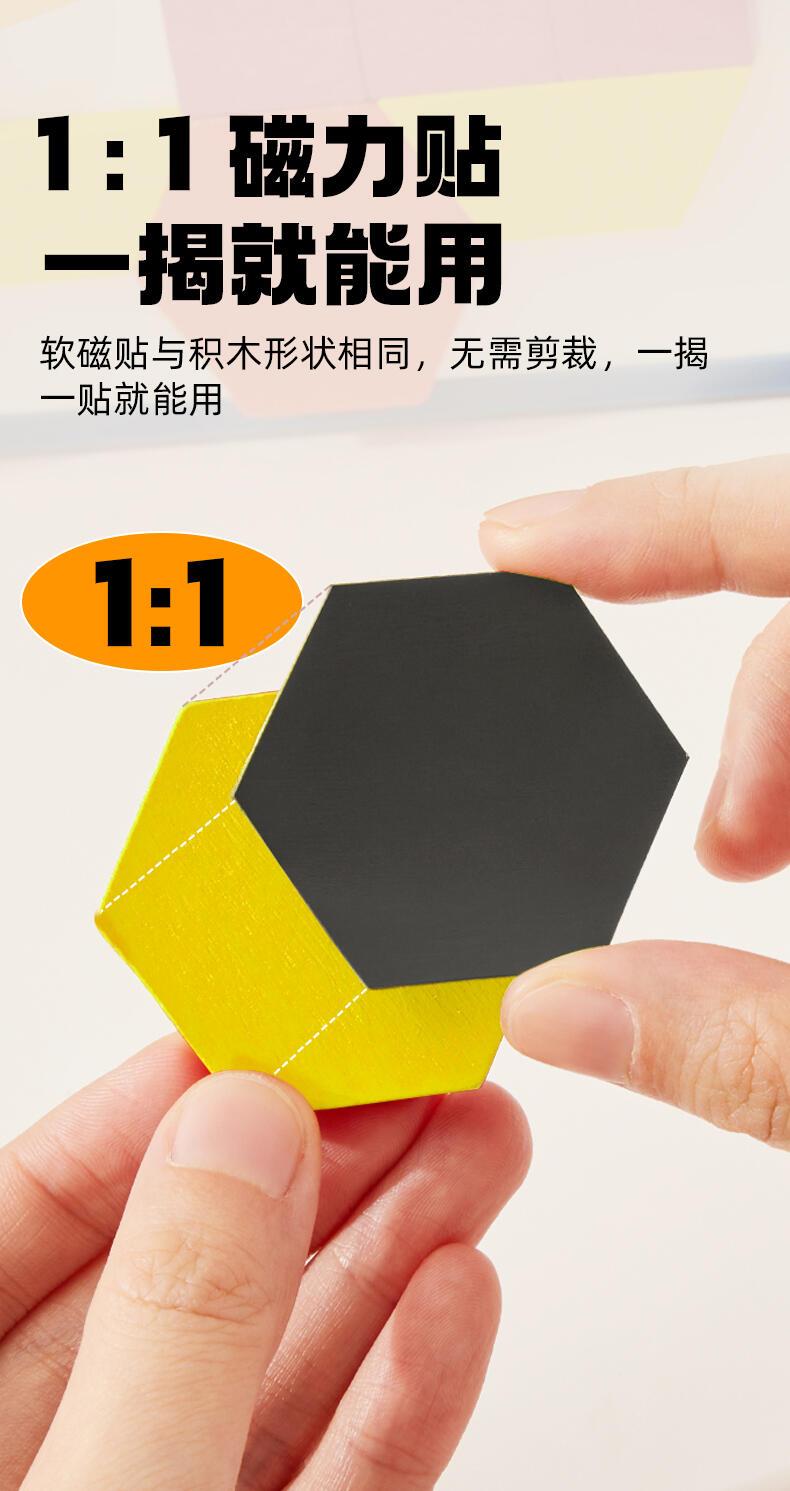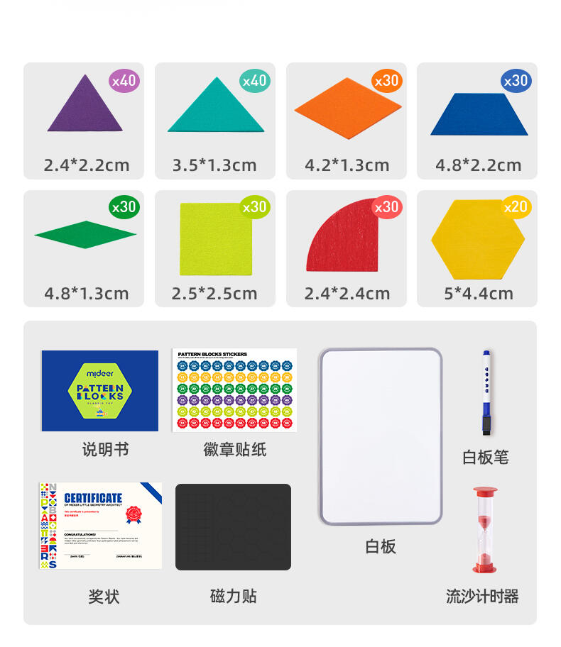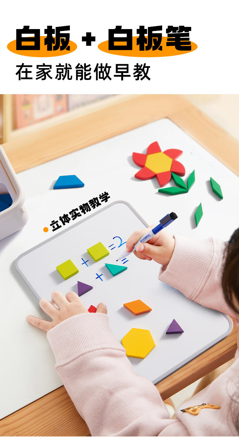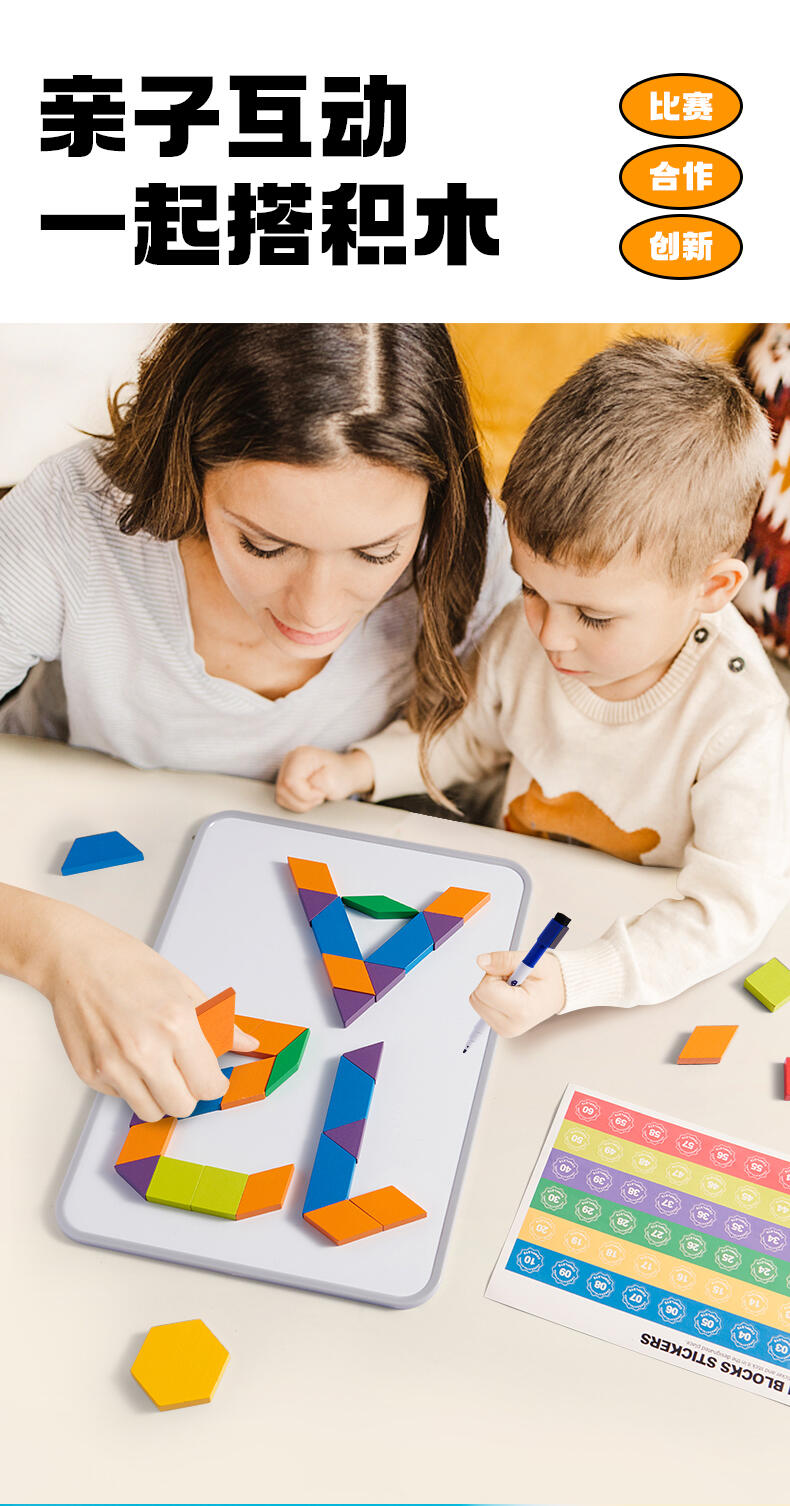 | 足足250片,各种图案都能拼,提供进阶玩法,由简到难做引导。1:1磁力贴,稳固积木不乱跑。360°打磨,每一块都光滑。白板+白板笔,在家就能做早教,分格收纳箱,存放有序不凌乱 |