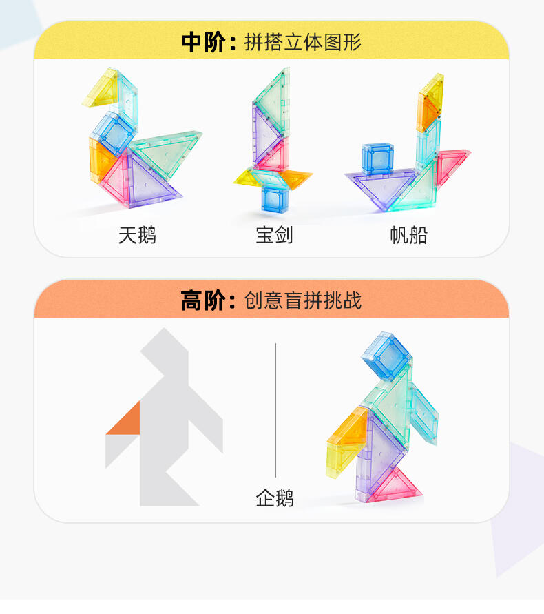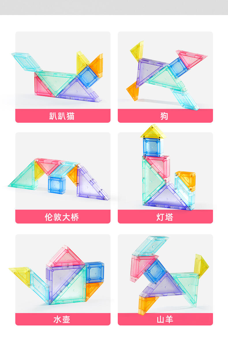 大尺寸便抓握/结构优化吸加强搭建更稳定/搭配记时沙漏限时玩法/说明书玩法新增有平面和立体玩法,难度进阶,题库数量丰富一共193道题