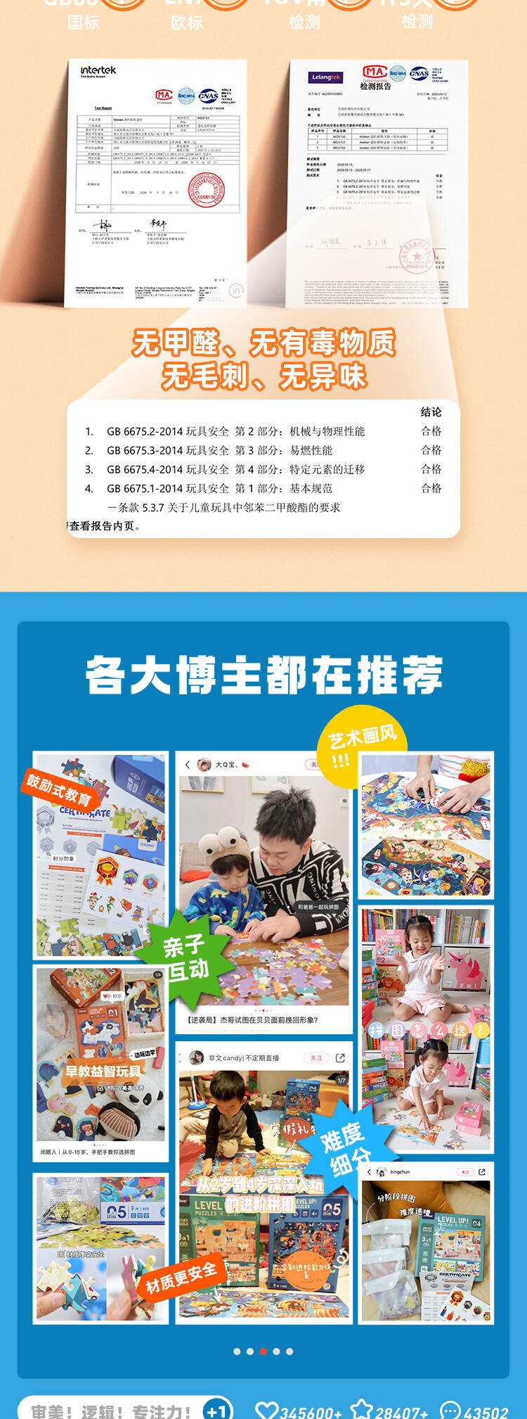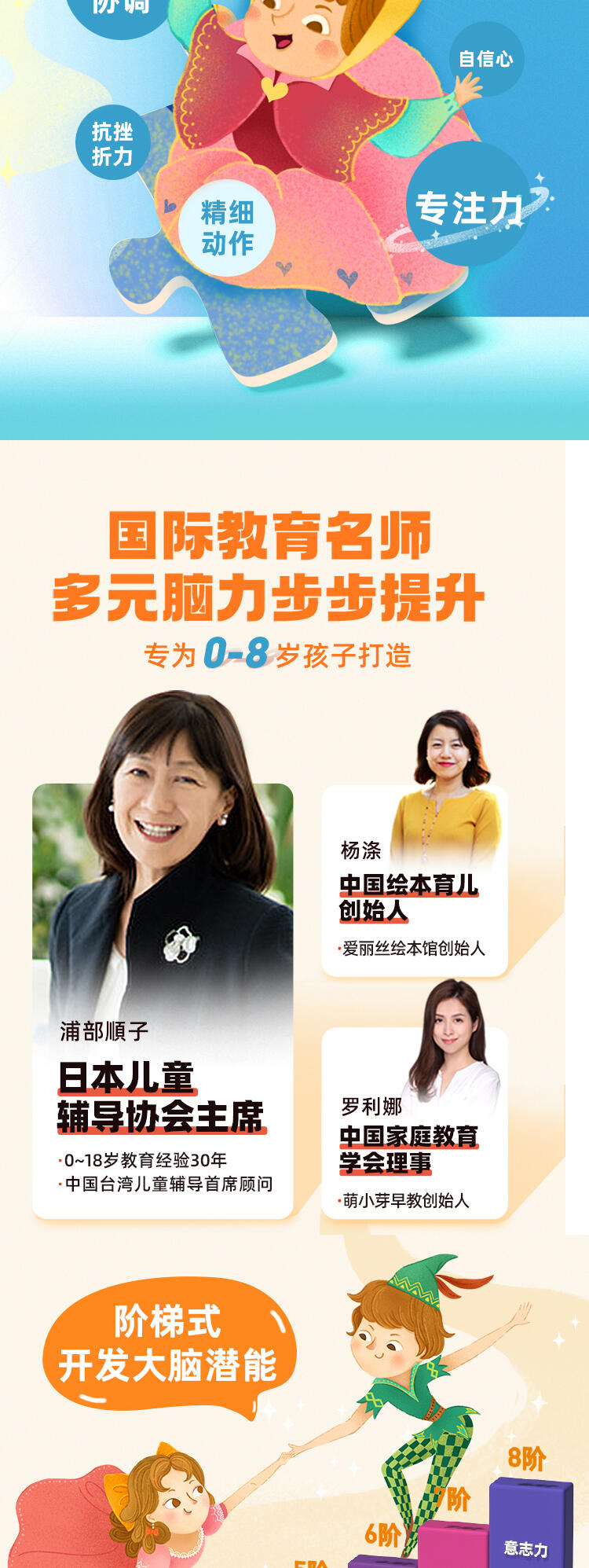 1)国际教育专家科学定制,拼块数量逐级递增,满足每个孩子在不同阶段的块数需求。适合1~7岁全年龄段,逐步培养逻辑思维力。