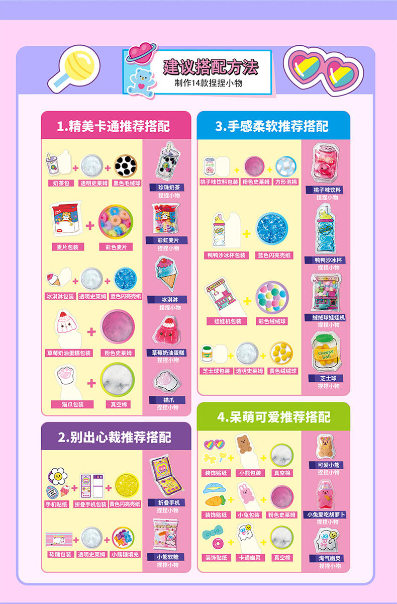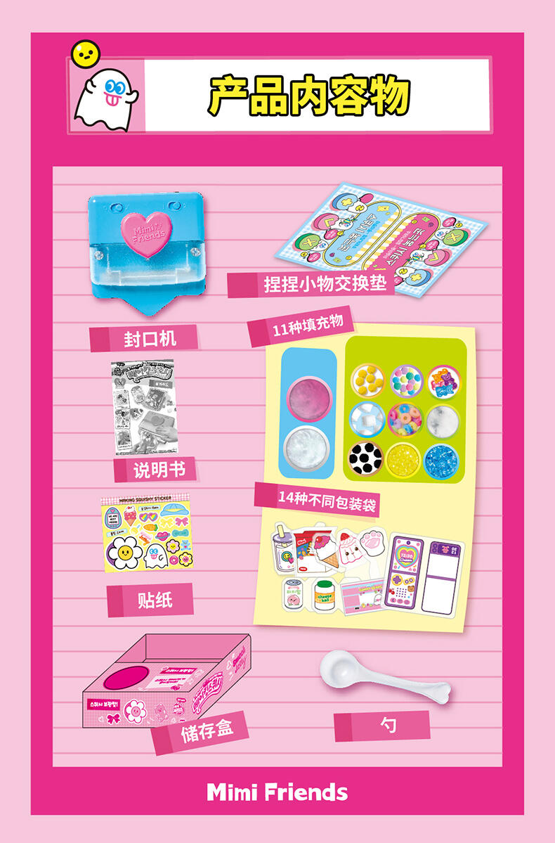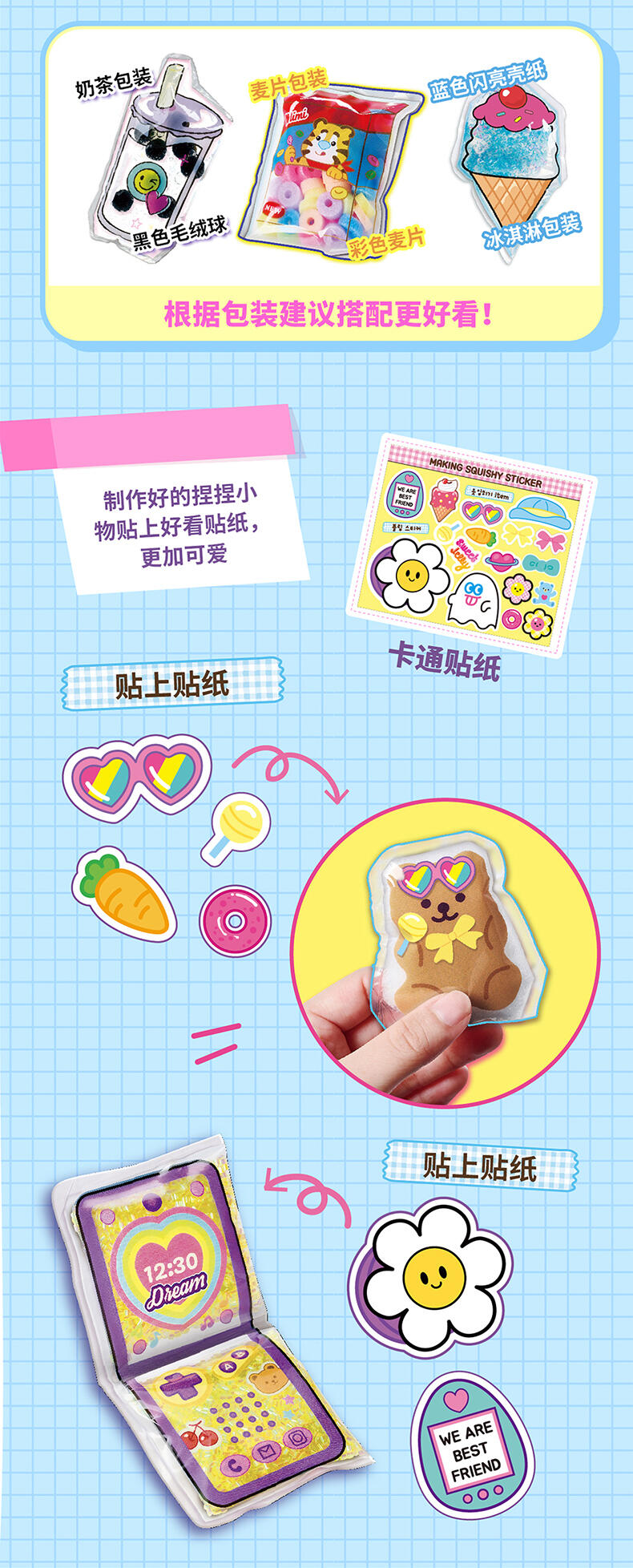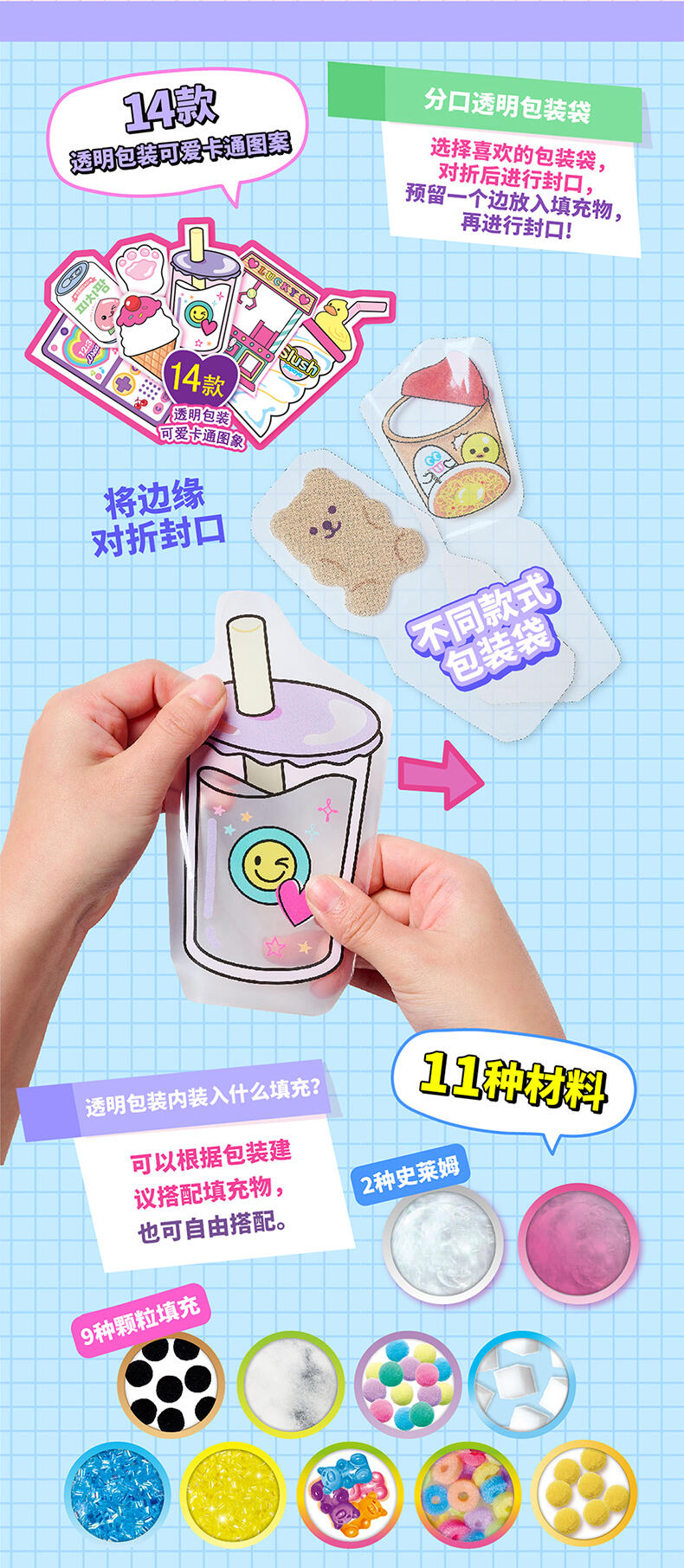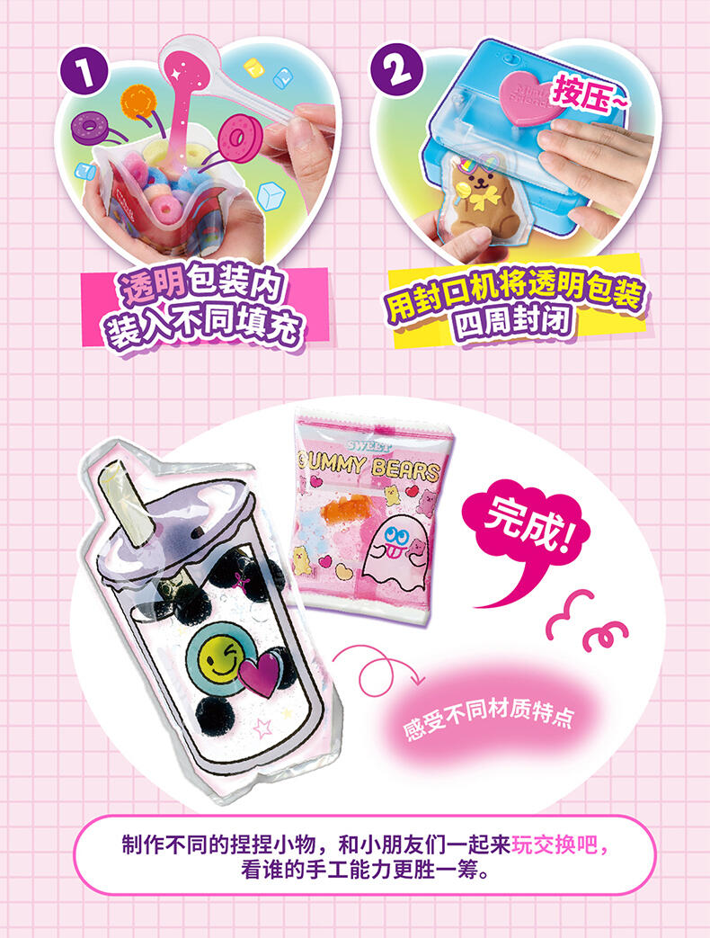 透明包装内装入不同填充物,用封口机将透明包装四周封闭。