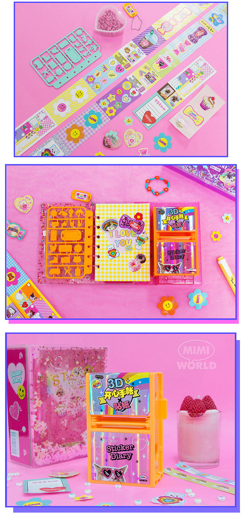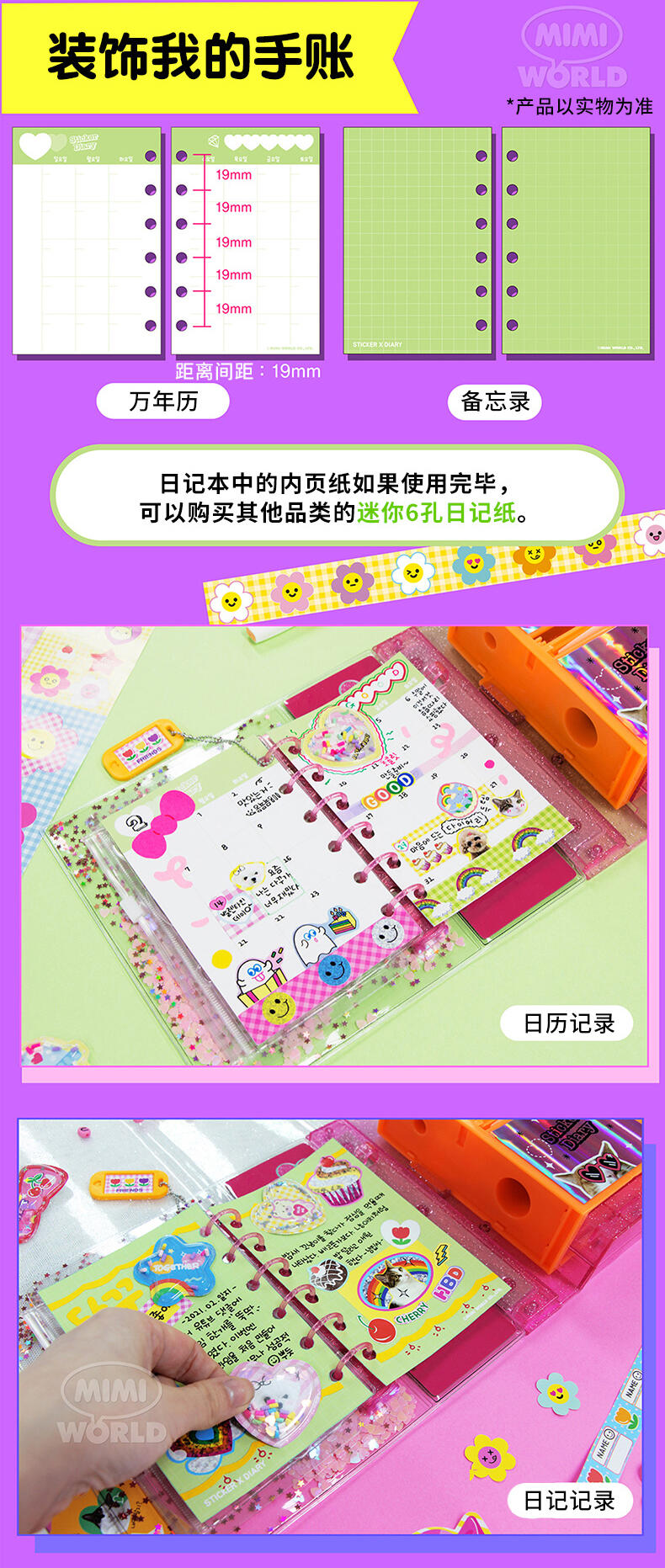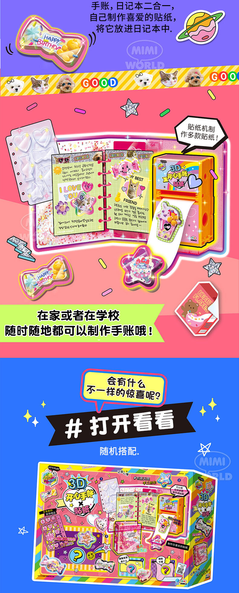 Mimi World迷你玫美 开心手账 3D 贴纸套