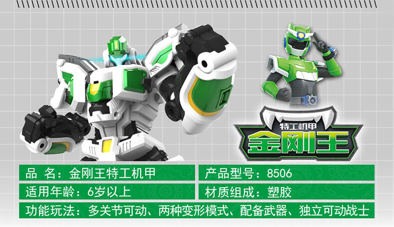 2.金刚王形态与机甲形态自由变形互换,关节灵活,变形顺畅;