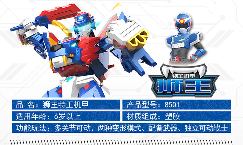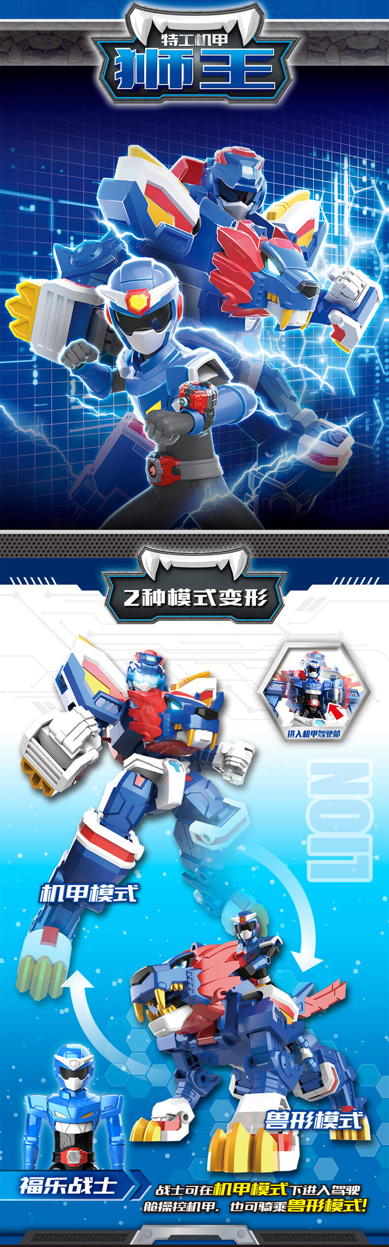 2.狮王形态与机甲形态自由变形互换,关节灵活,变形顺畅;