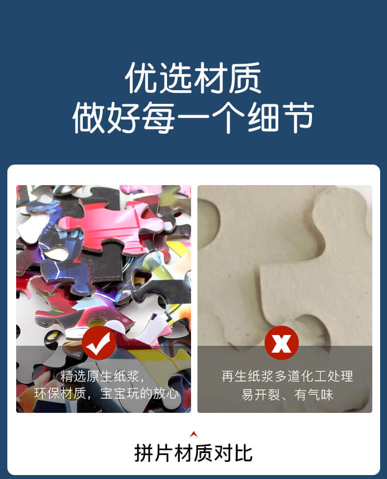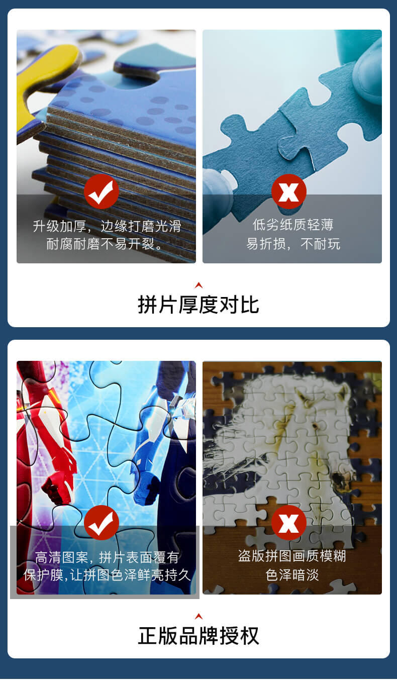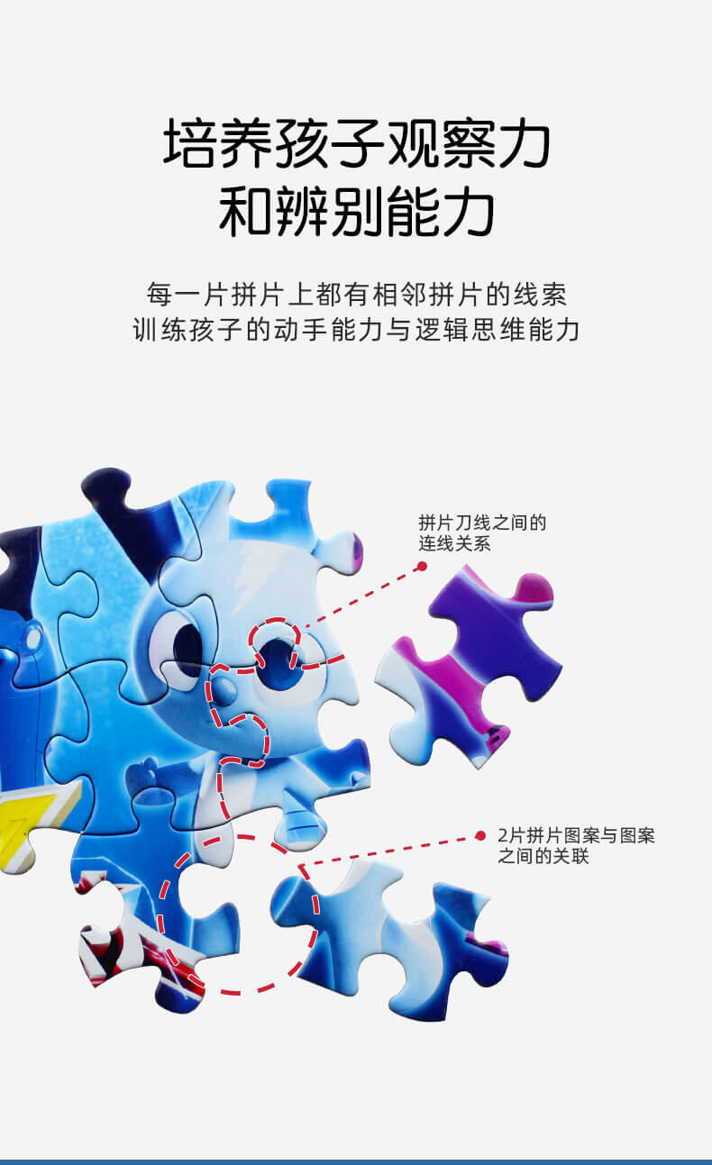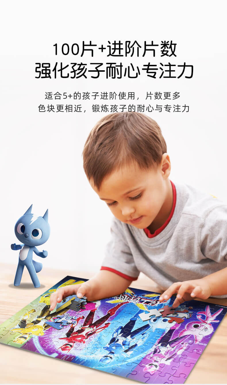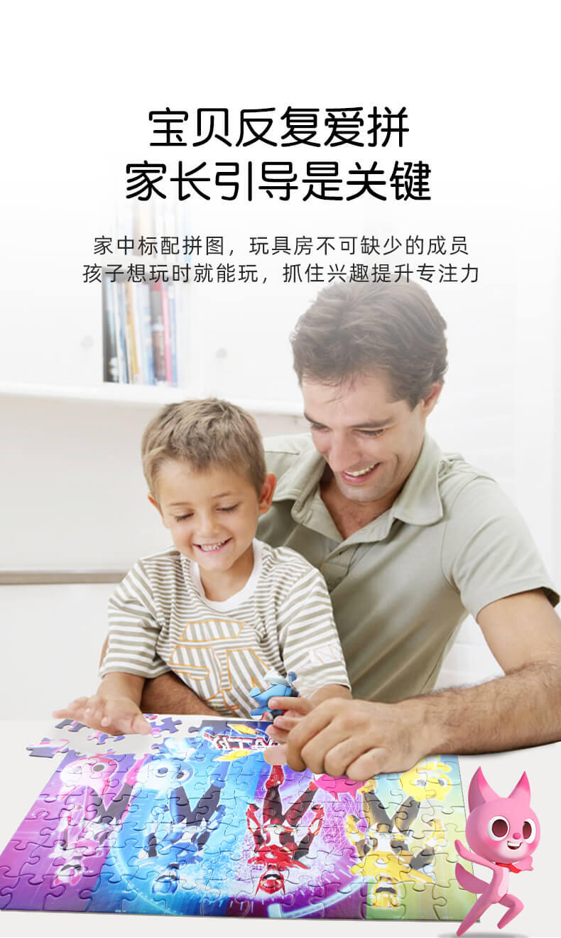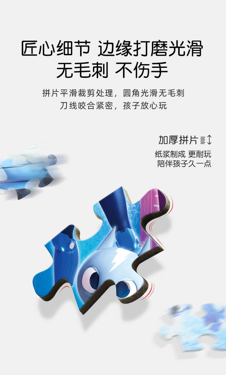 迷你特工队100片纸盒盒装拼图适合5-10岁儿童,采用正版卡通授权图案,培养孩子的色彩的观察力,专注力,及局部到整体拼合的逻辑思维能力,产品采用优质原生纸浆,加厚拼片更耐玩,切片圆润好手感,无毛刺不伤手,赠送高清图案1:1图纸,小朋友们可以对照图纸,进行拼图,拼图拼完后的尺寸大约有41cm*28cm ,整幅拼图看上去非常高质 ,图案高清、色彩亮丽,彩盒包装轻便,有利于儿童养成玩好收纳的好习惯。原生纸浆,压制紧密,切片圆润无毛刺。迷你特工队正版授权IP,品质保证。赠送1:1比例图纸,对照拼图上手更容易 高清印刷,图案精美。天地盖彩盒包装,养成收纳好习惯。材质: 纸质