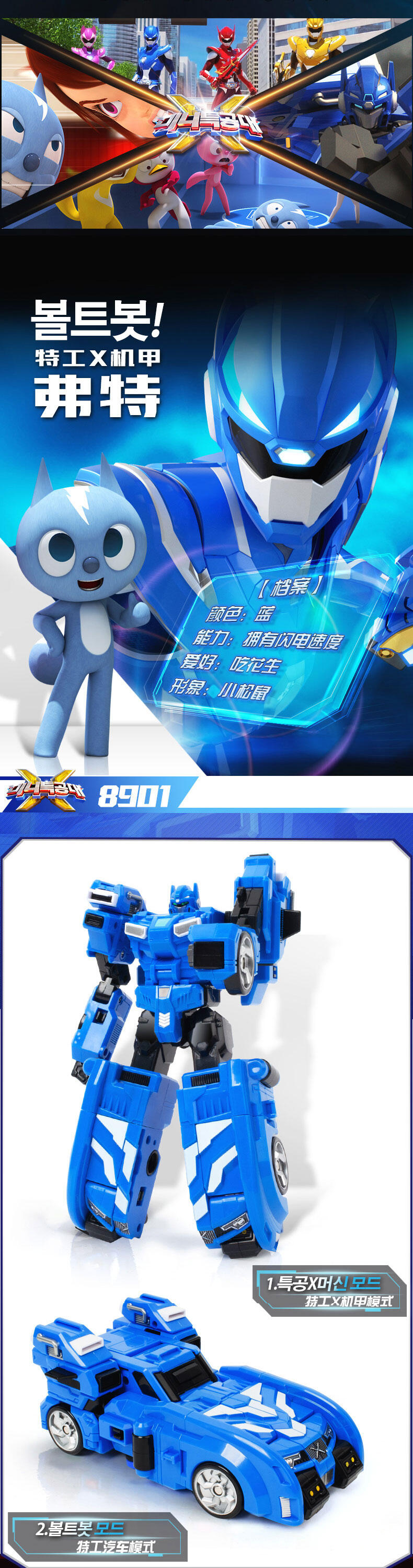 动画中弗特形象,机甲高22cm,可变身机甲模式和汽车模式