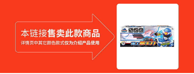 1.迷你特工队队员的通用武器,出场率极高; 2.三种变形模式,兽王刀、兽王弩、兽王枪; 3.声光功能,按下按键有声光效果;