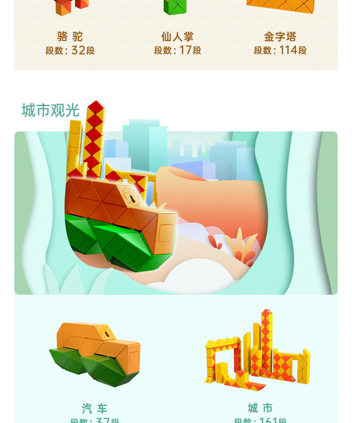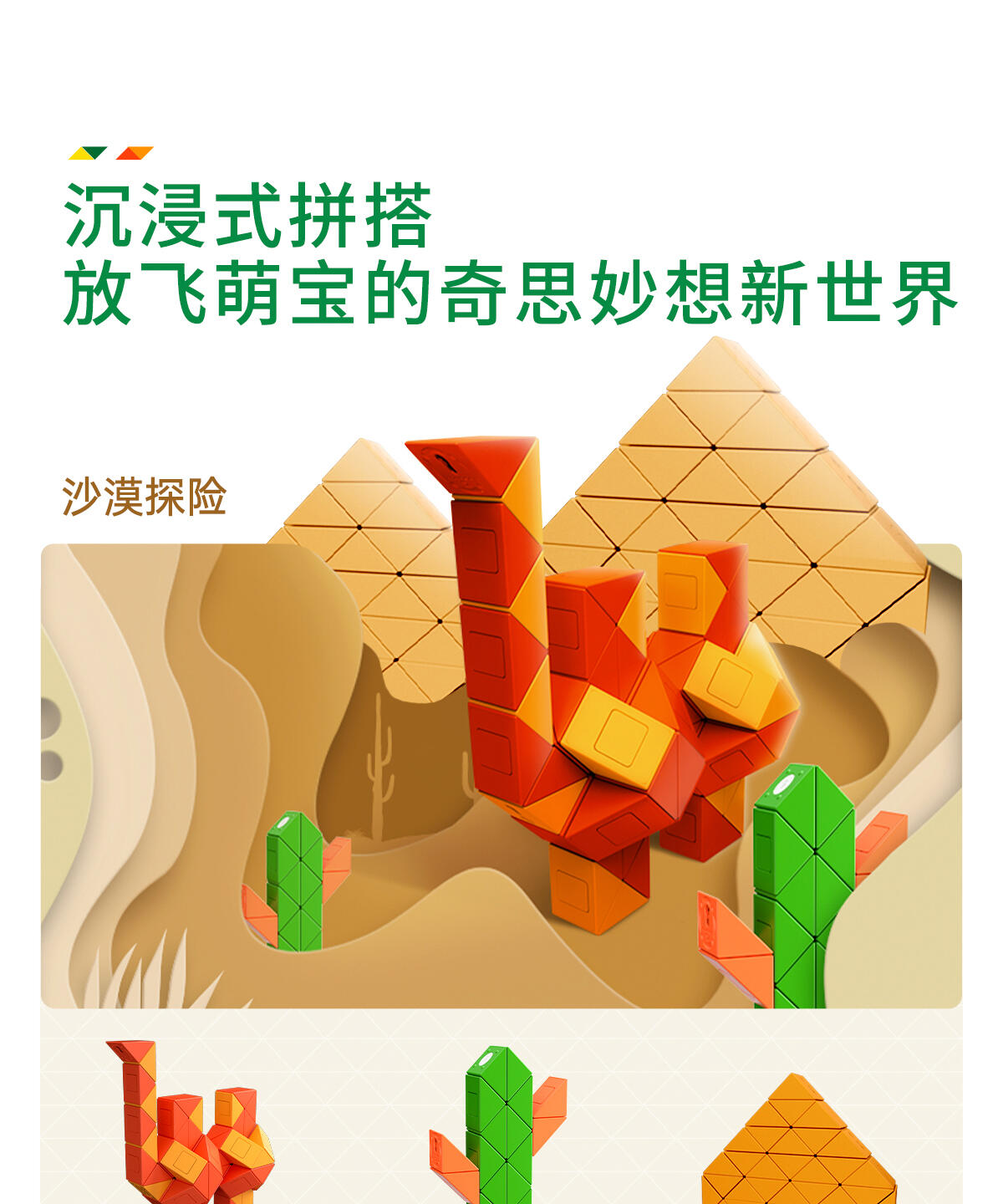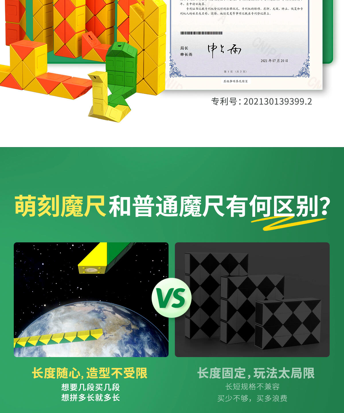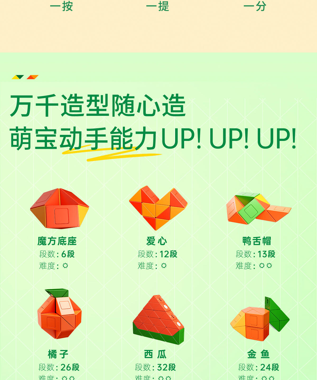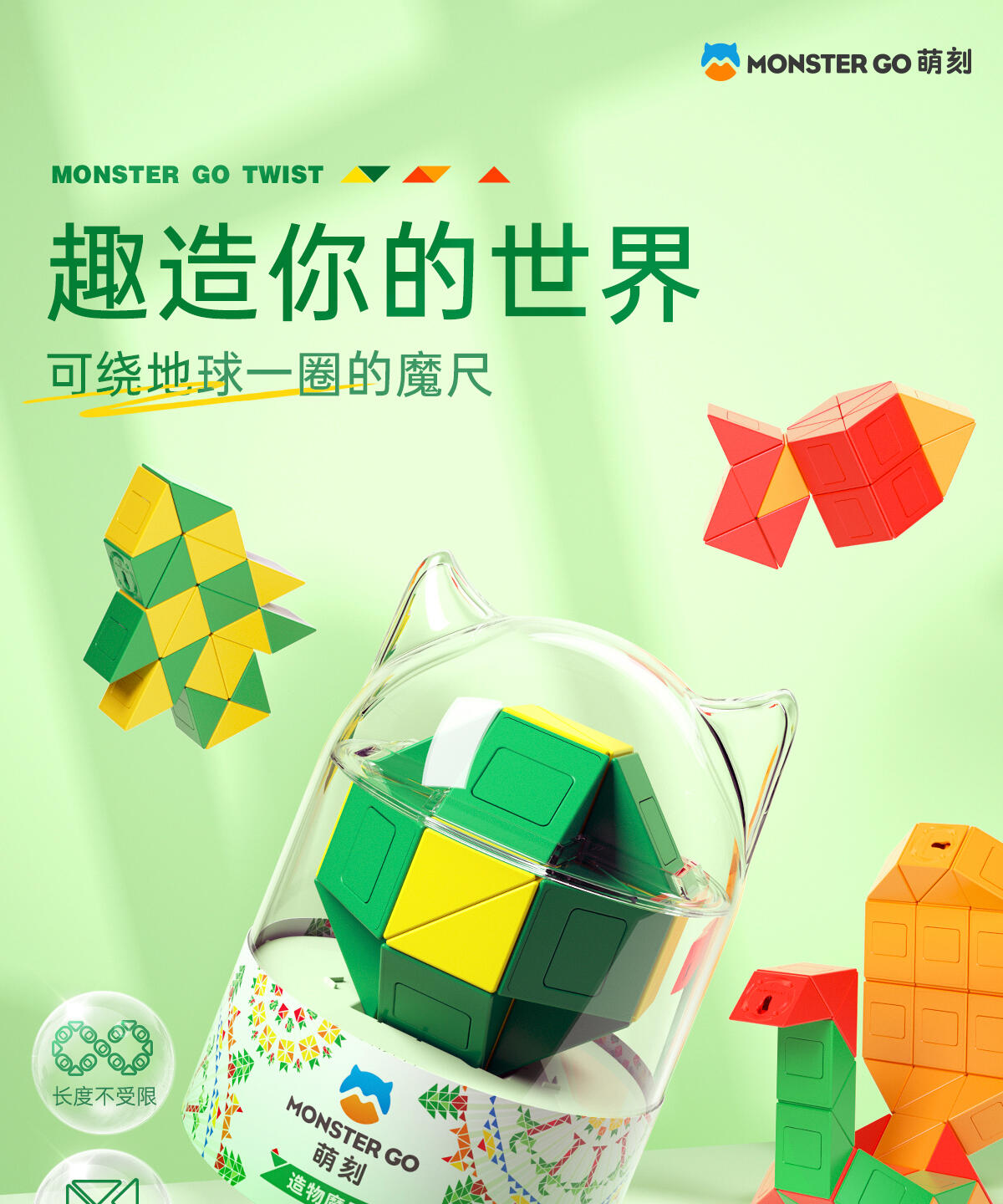 专利级拆拼设计,打破传统魔尺长度限制,长度自由肆意畅玩;扭/拼/叠多种玩法,200+造型随心造