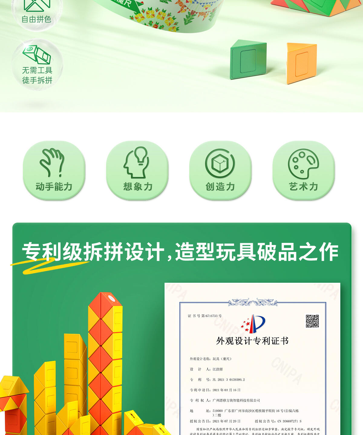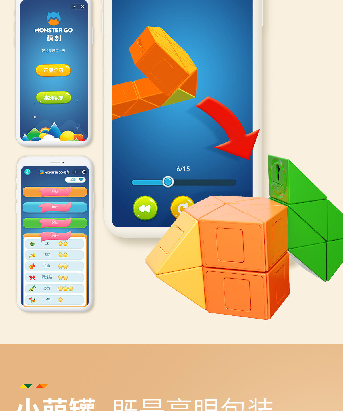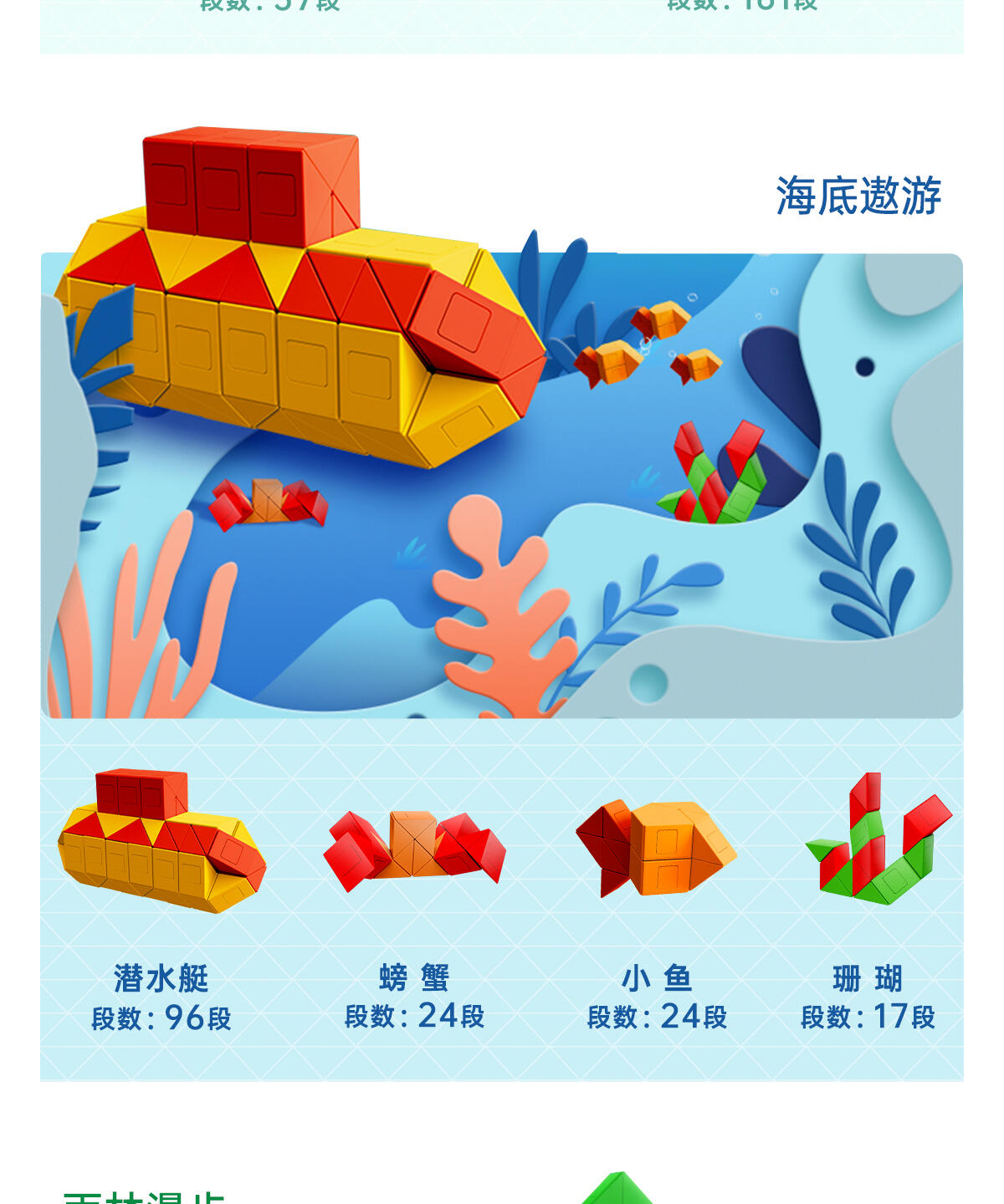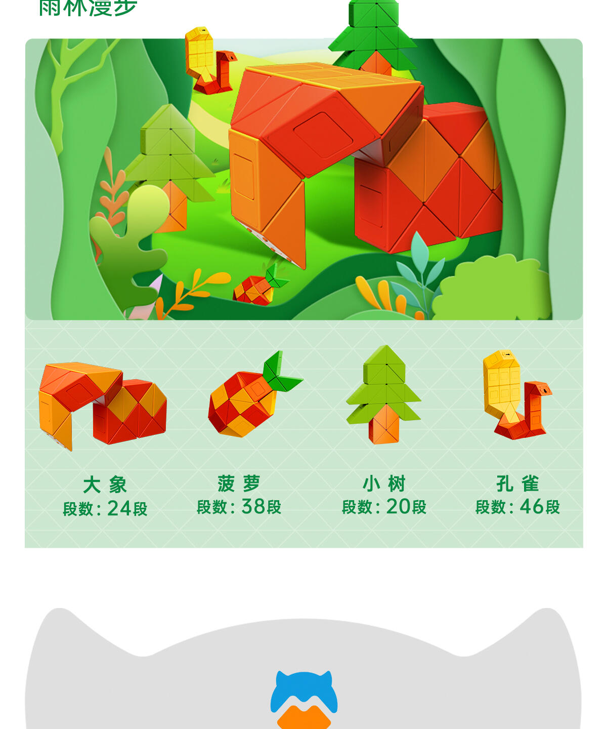 专利级拆拼设计,打破传统魔尺长度限制,长度自由肆意畅玩;扭/拼/叠多种玩法,200+造型随心造