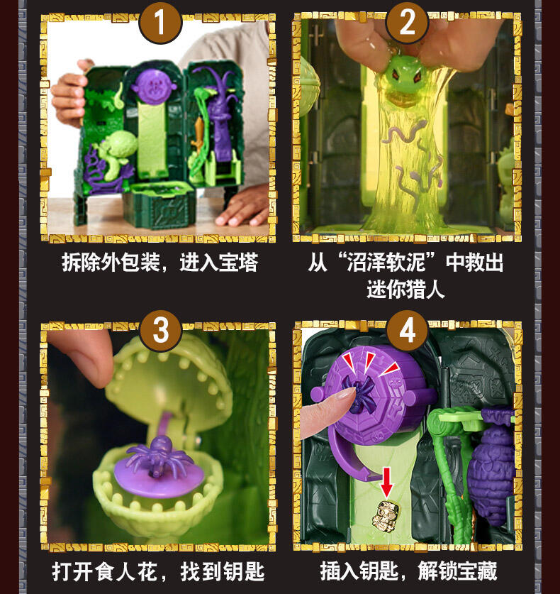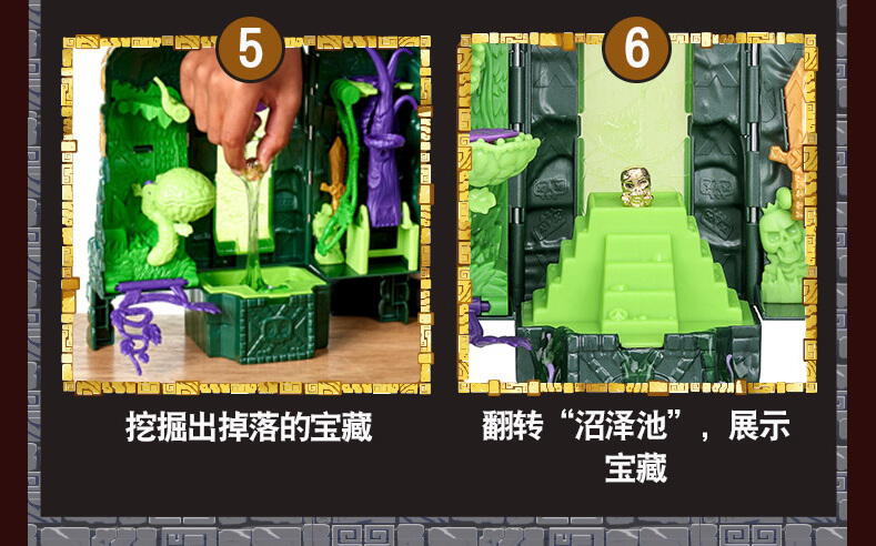 将装有沼泽软泥/熔岩/雪粉的包装盒翻转,可展示寻找到的宝藏。