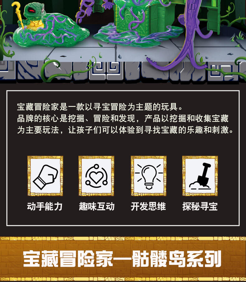 骷髅岛是一个充满冒险、神秘和寻宝的世界!孩子们可以沿着寻宝图去探索骷髅岛,寻找隐藏的宝藏!