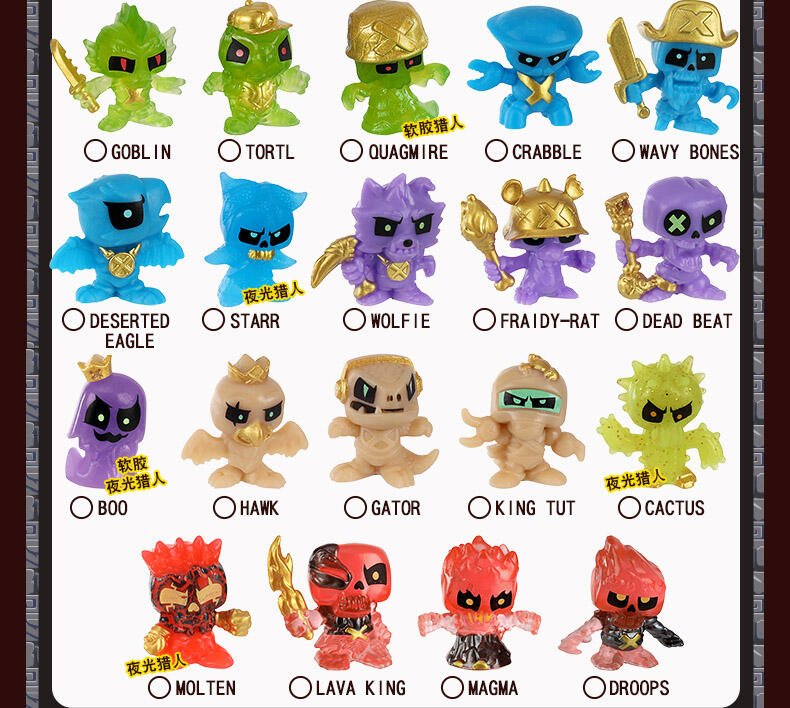 用包装内附带的“塑料小剑”,沿着包装上的藏宝路线依次划开,找到4个迷你猎人和1个金色贴纸,最后在“金色软泥”中挖掘宝藏!