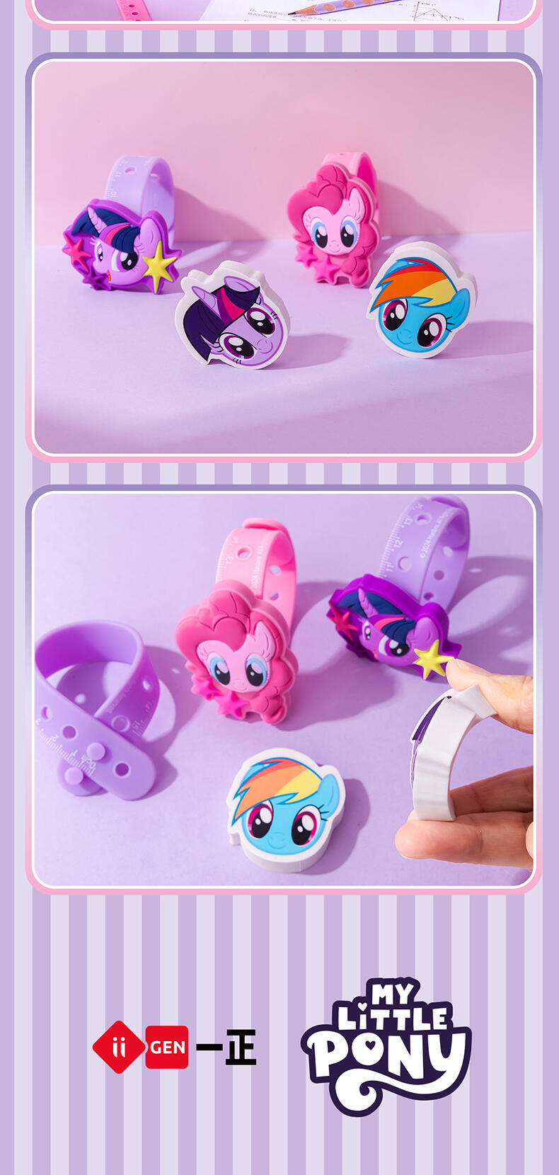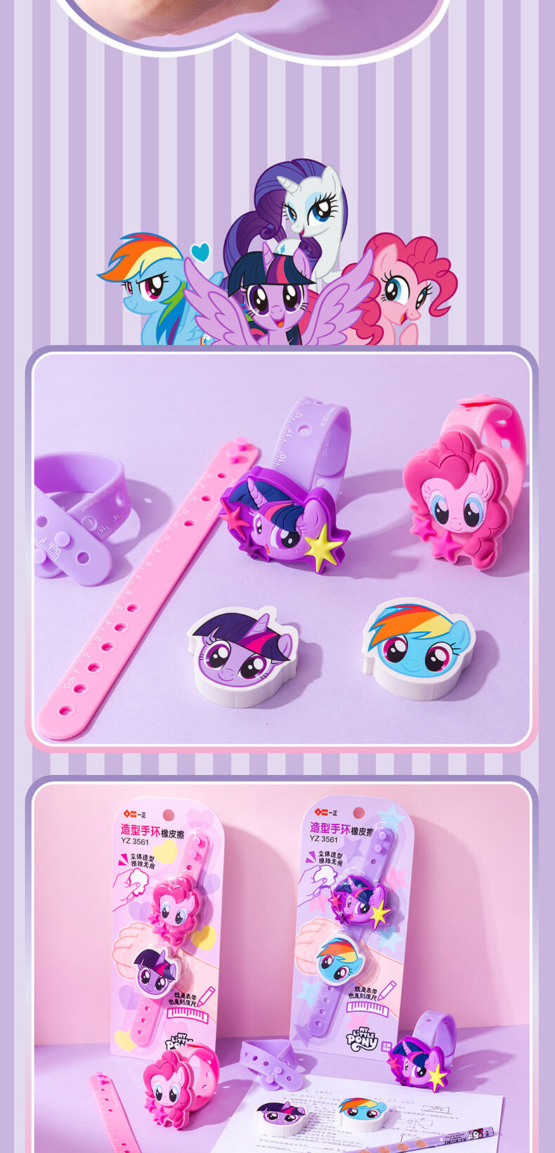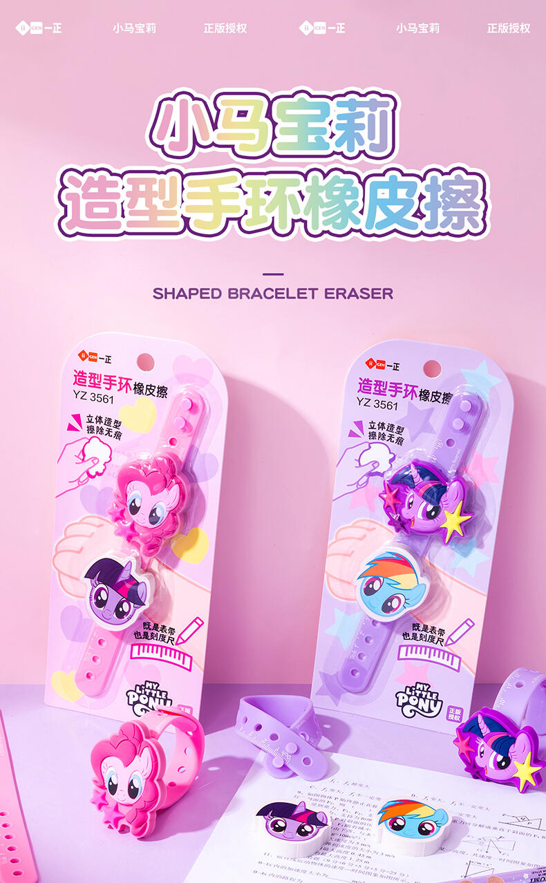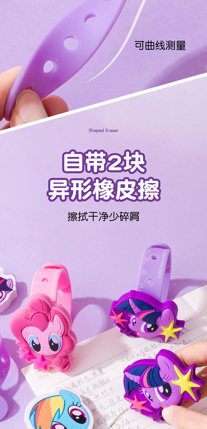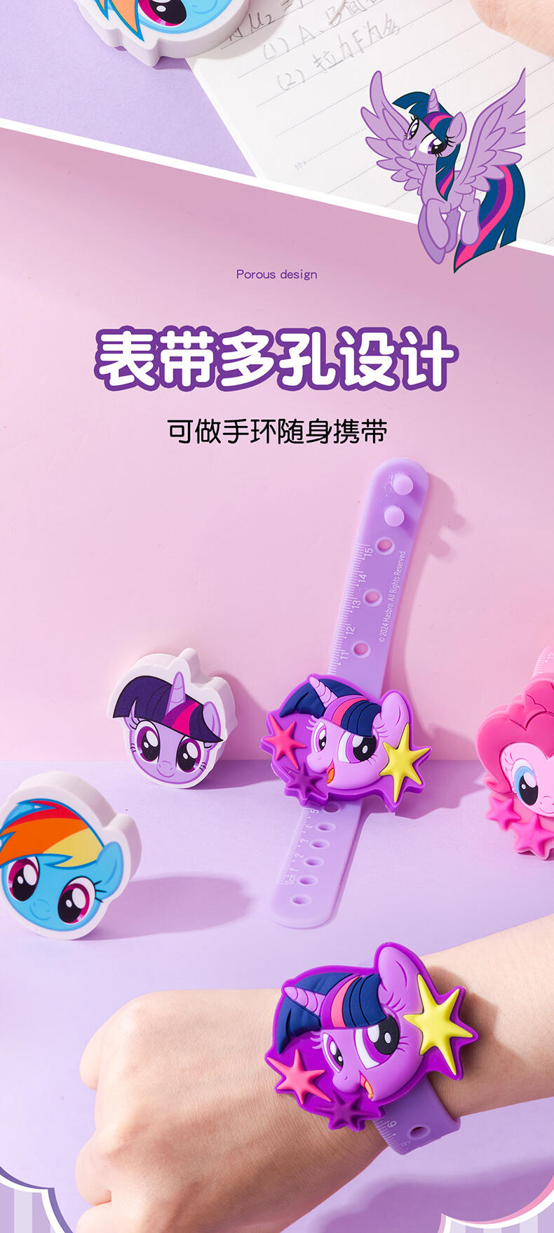 15cm刻度柔软直尺,自带2块异形橡皮擦,表带多孔设计.